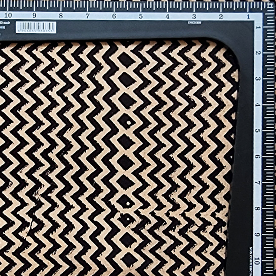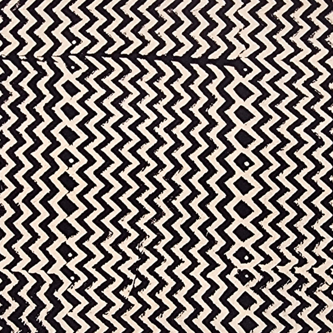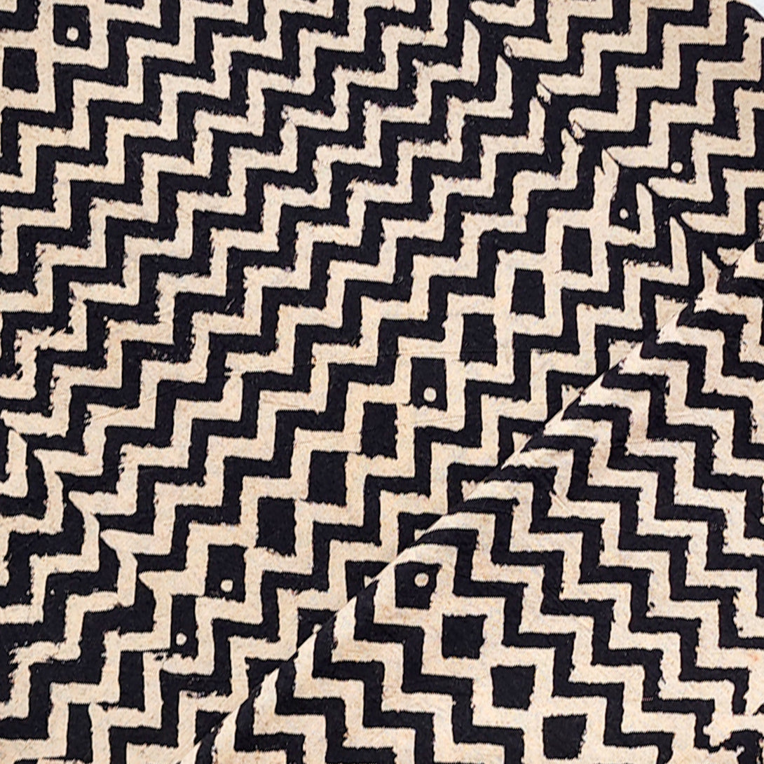 Pure Cotton Ajrak Black With Off White Zig-Zag Hand Block Print Fabric
