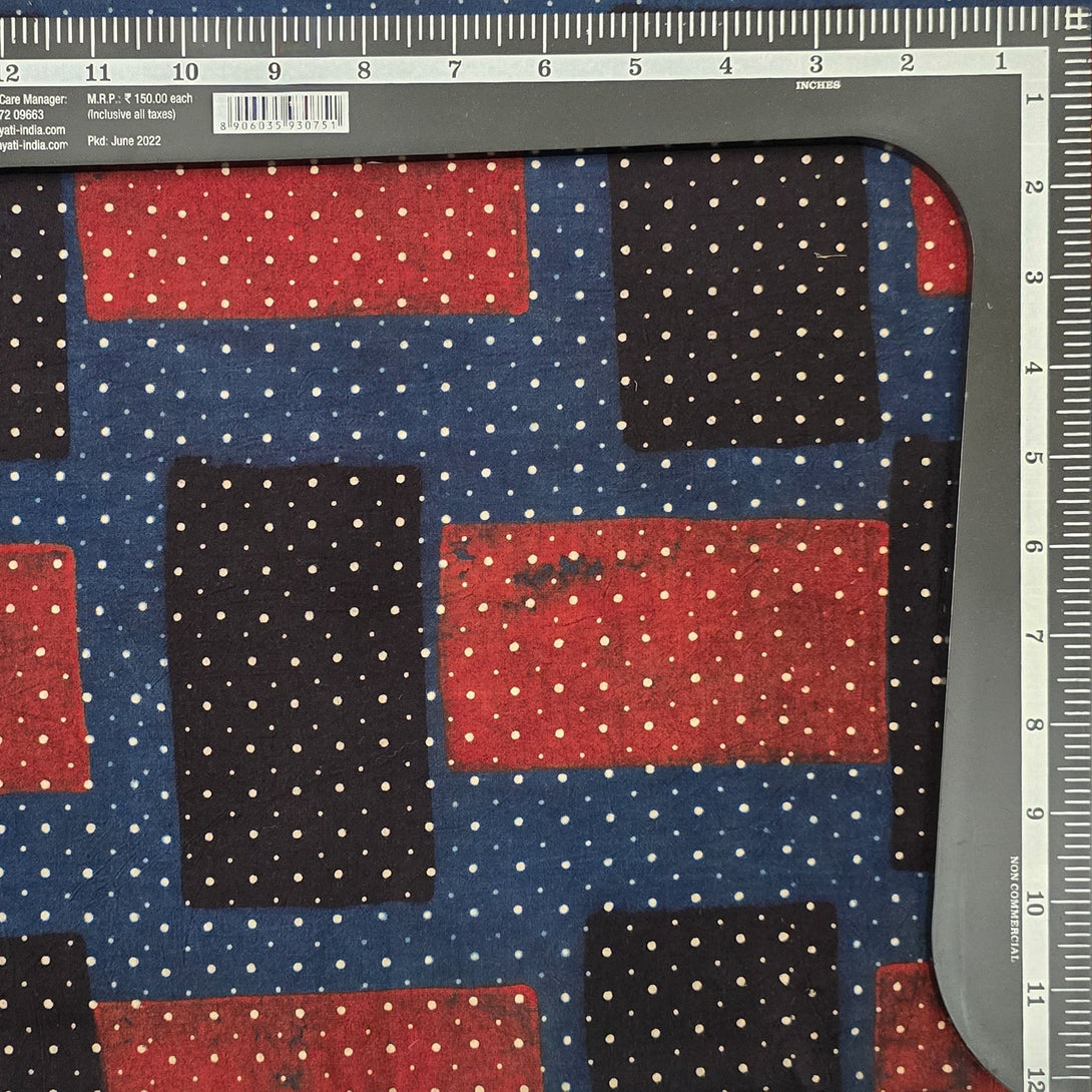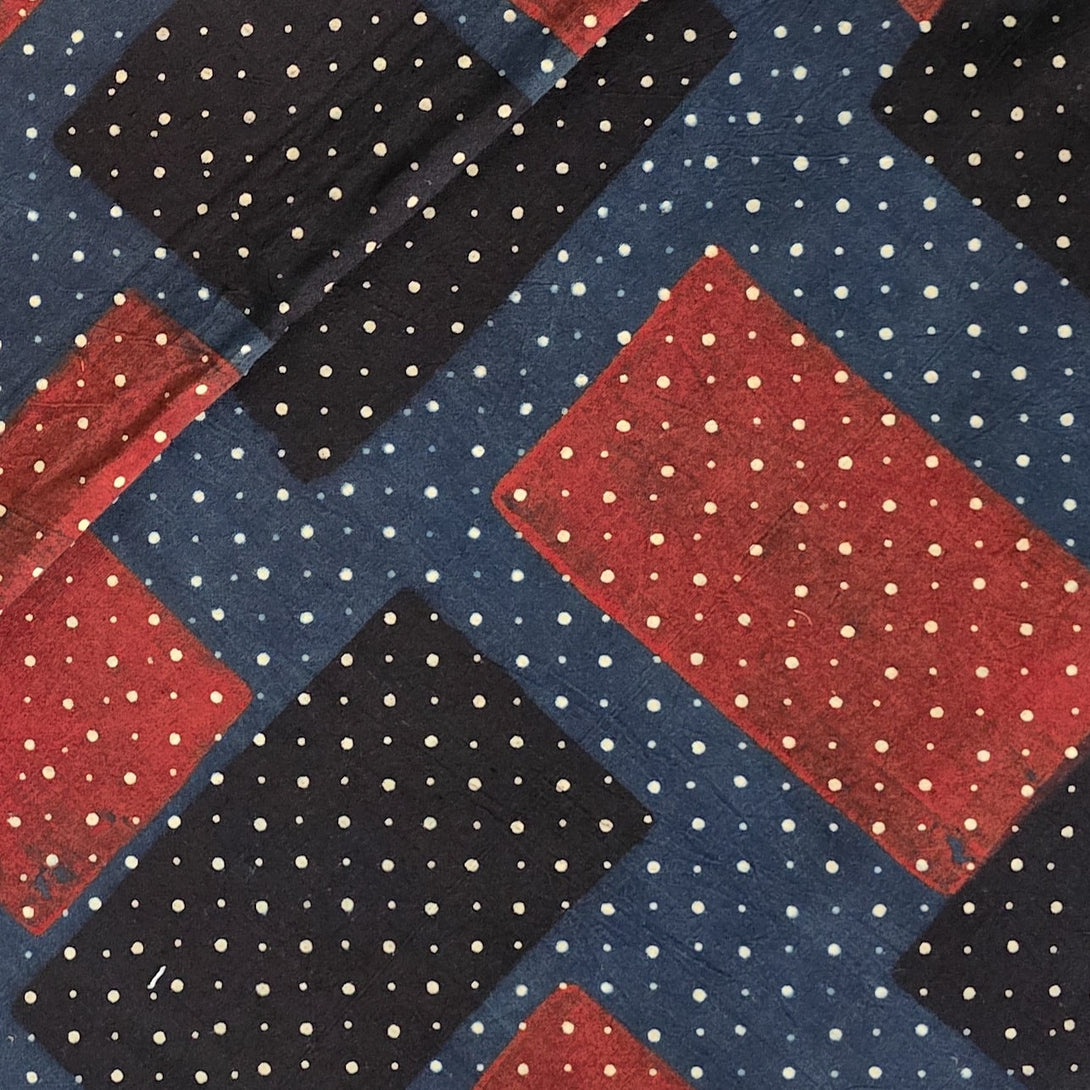 Pure Cotton Ajrak Blue With Black And Rust Red Bricks Hand Block Print Fabric