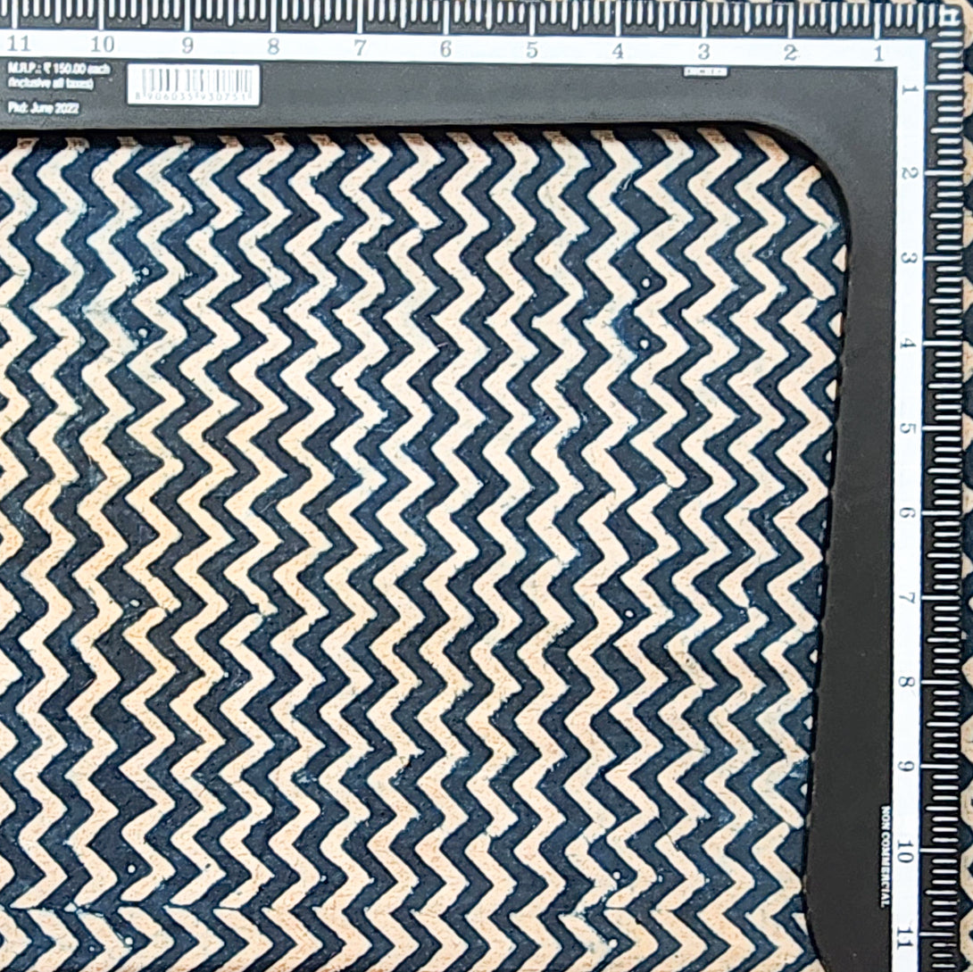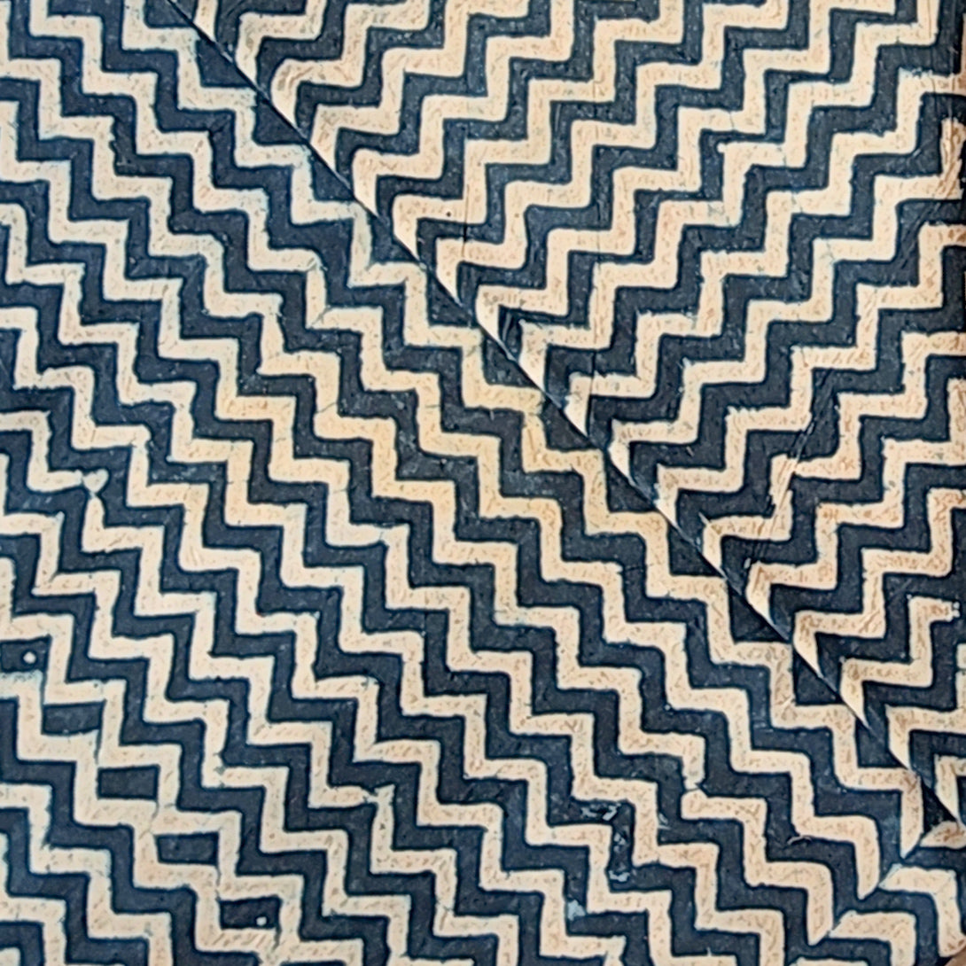 Pure Cotton Ajrak Blue With Cream Zig-Zag Hand Block Print Fabric