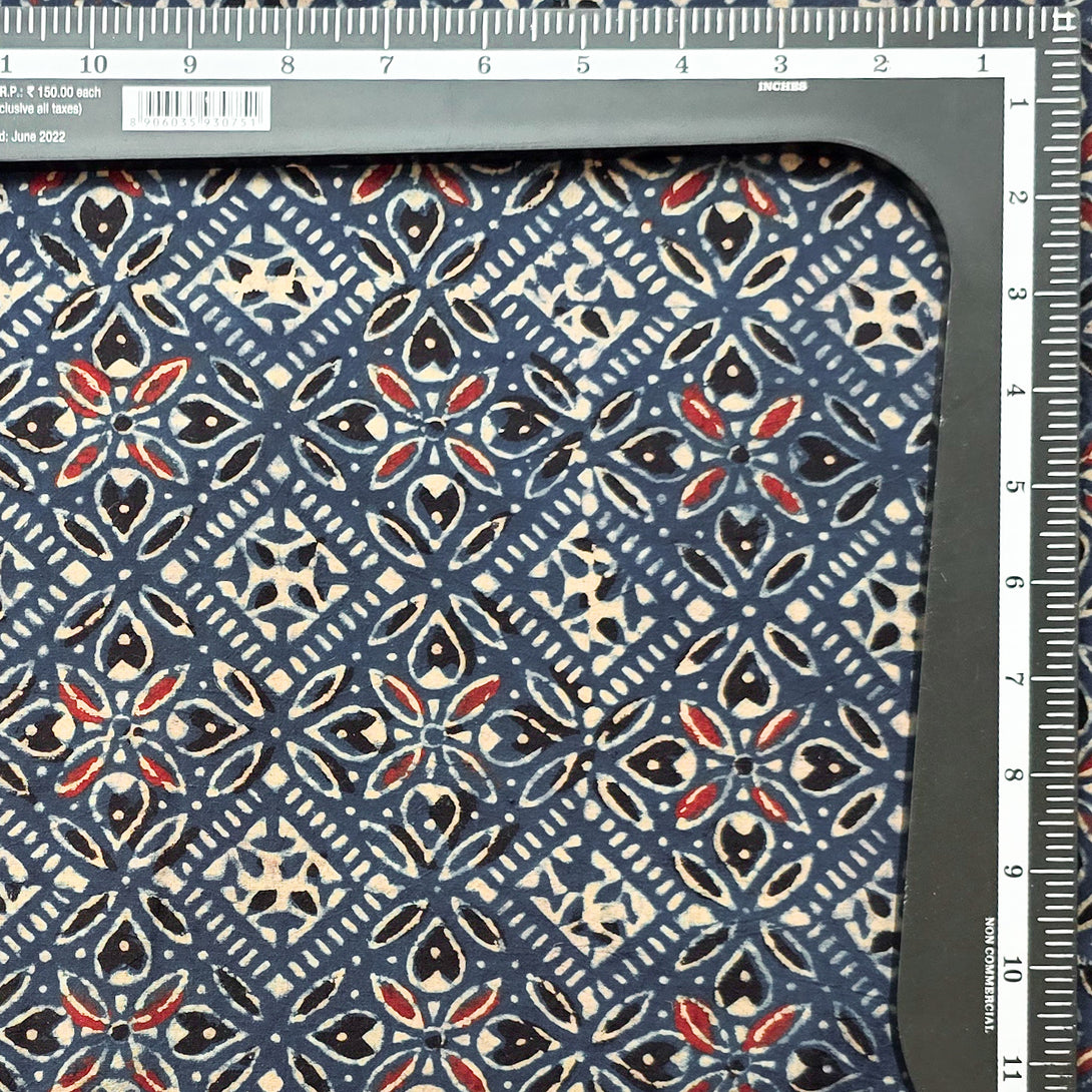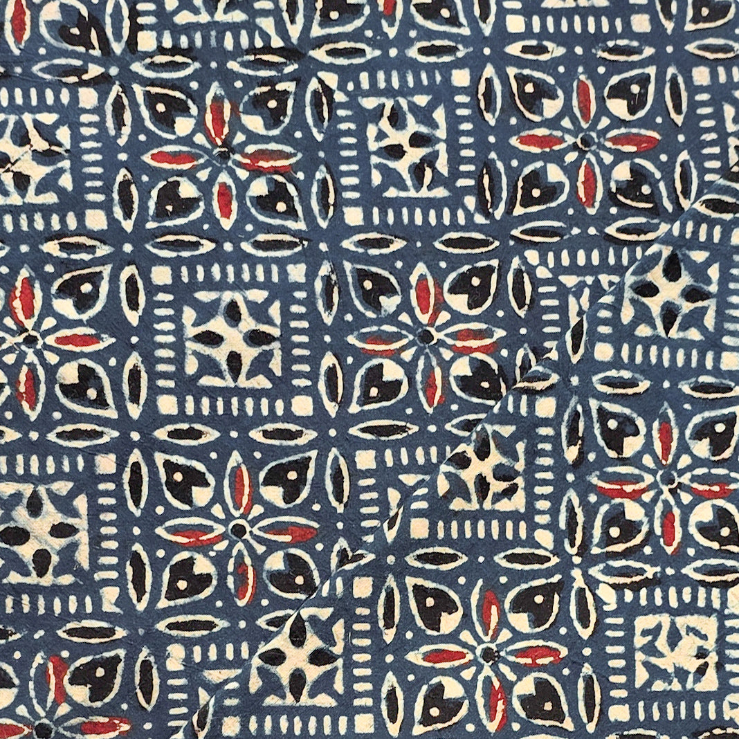 Pure Cotton Ajrak Blue With Intricate Design Hand Block Print Fabric