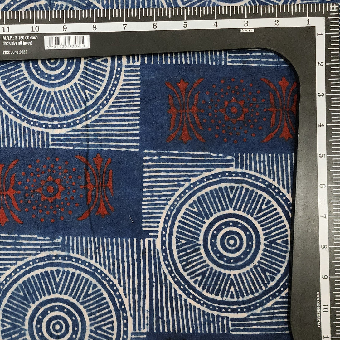 Pure Cotton Ajrak Blue With Off White Intricate Design With Red And Black Hand Block Print Fabric