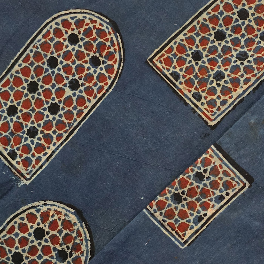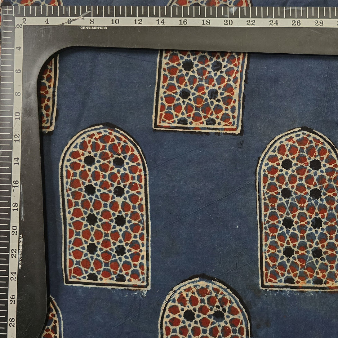 Pure Cotton Ajrak Blue With Red Window Hand Block Print Fabric