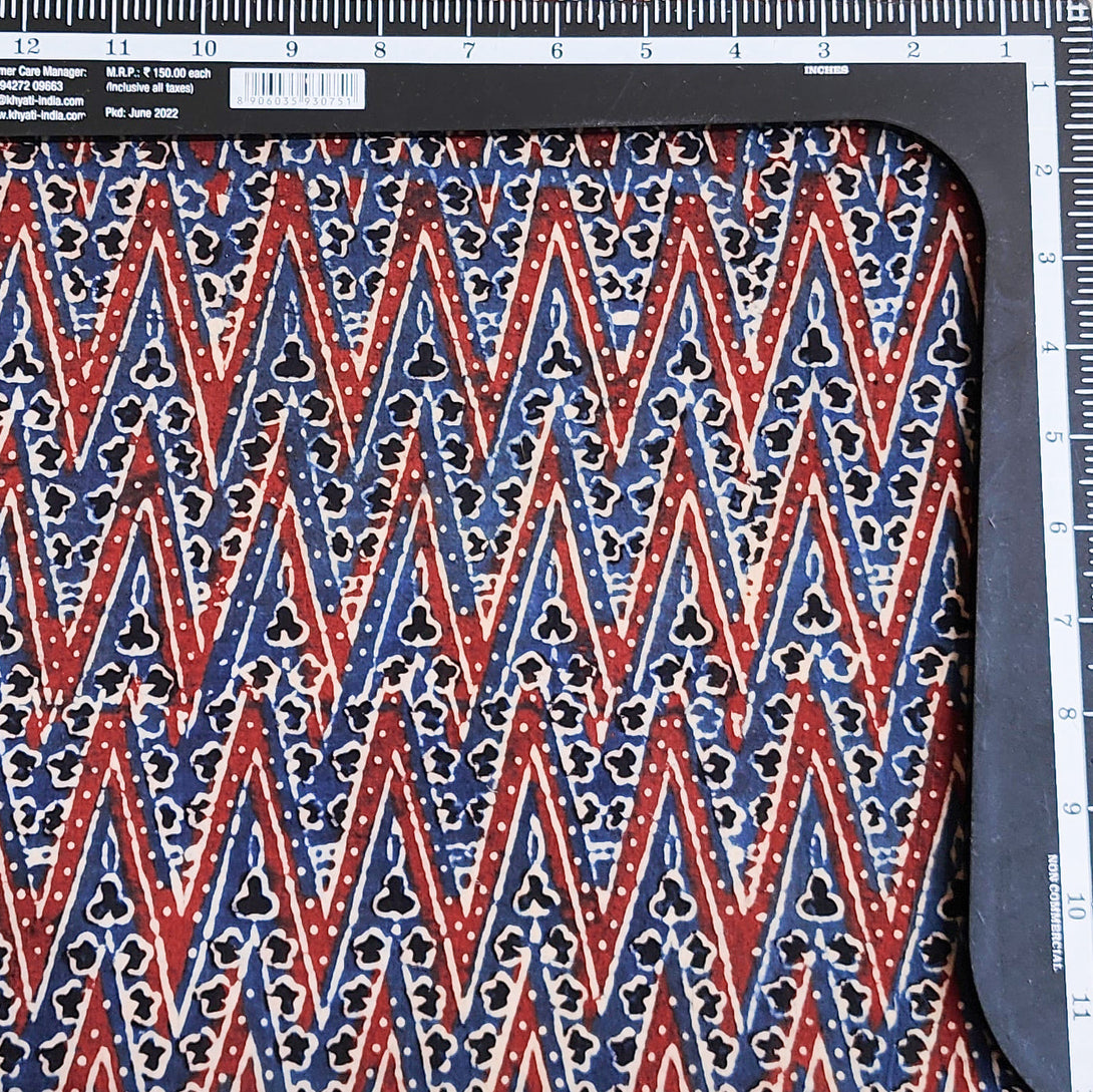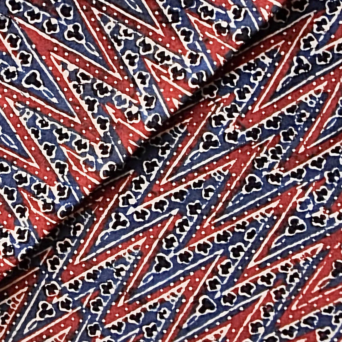 Pure Cotton Ajrak Blue With Red Zig-Zag Intricate Design Hand Block Print Fabric