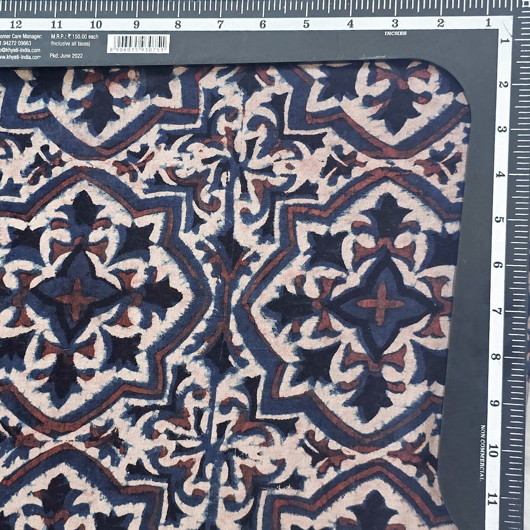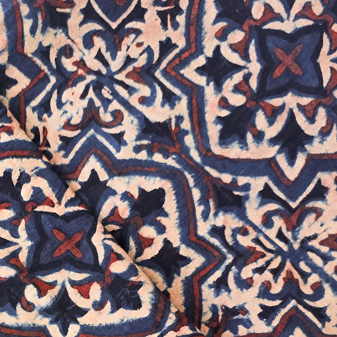 Pure Cotton Ajrak Blue With Rust cream Tile Design Hand Block Print Fabric