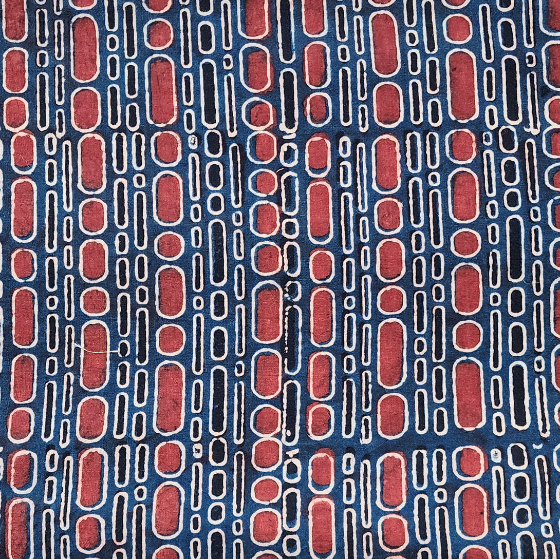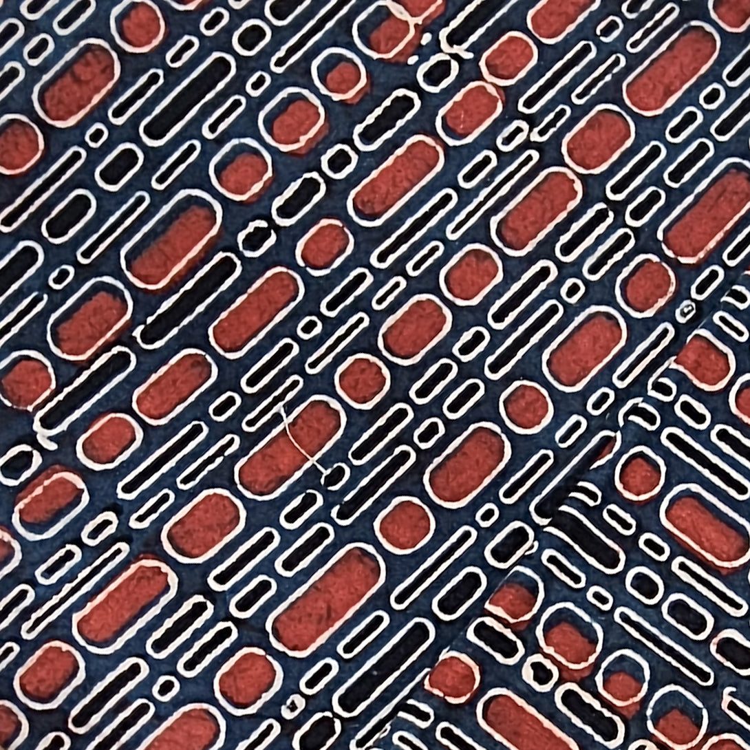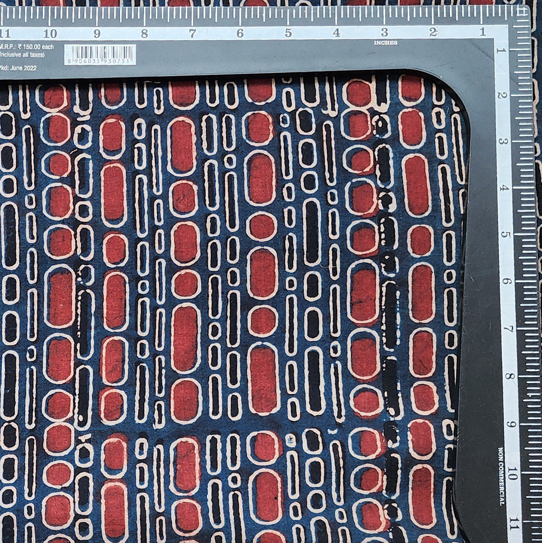 Pure Cotton Ajrak Blue With Rust Red Big And Small Bubbles Hand Block Print Fabric