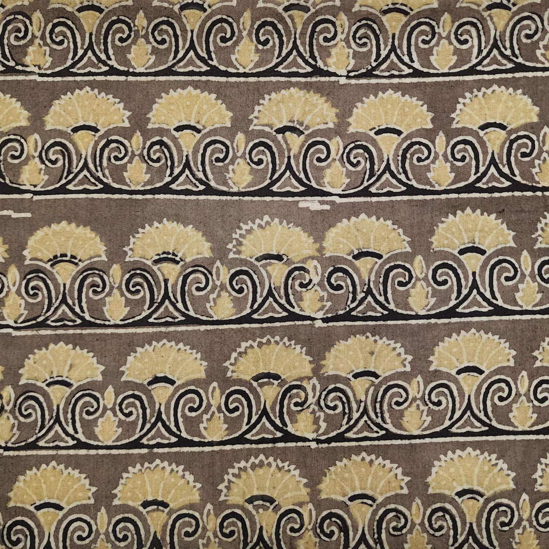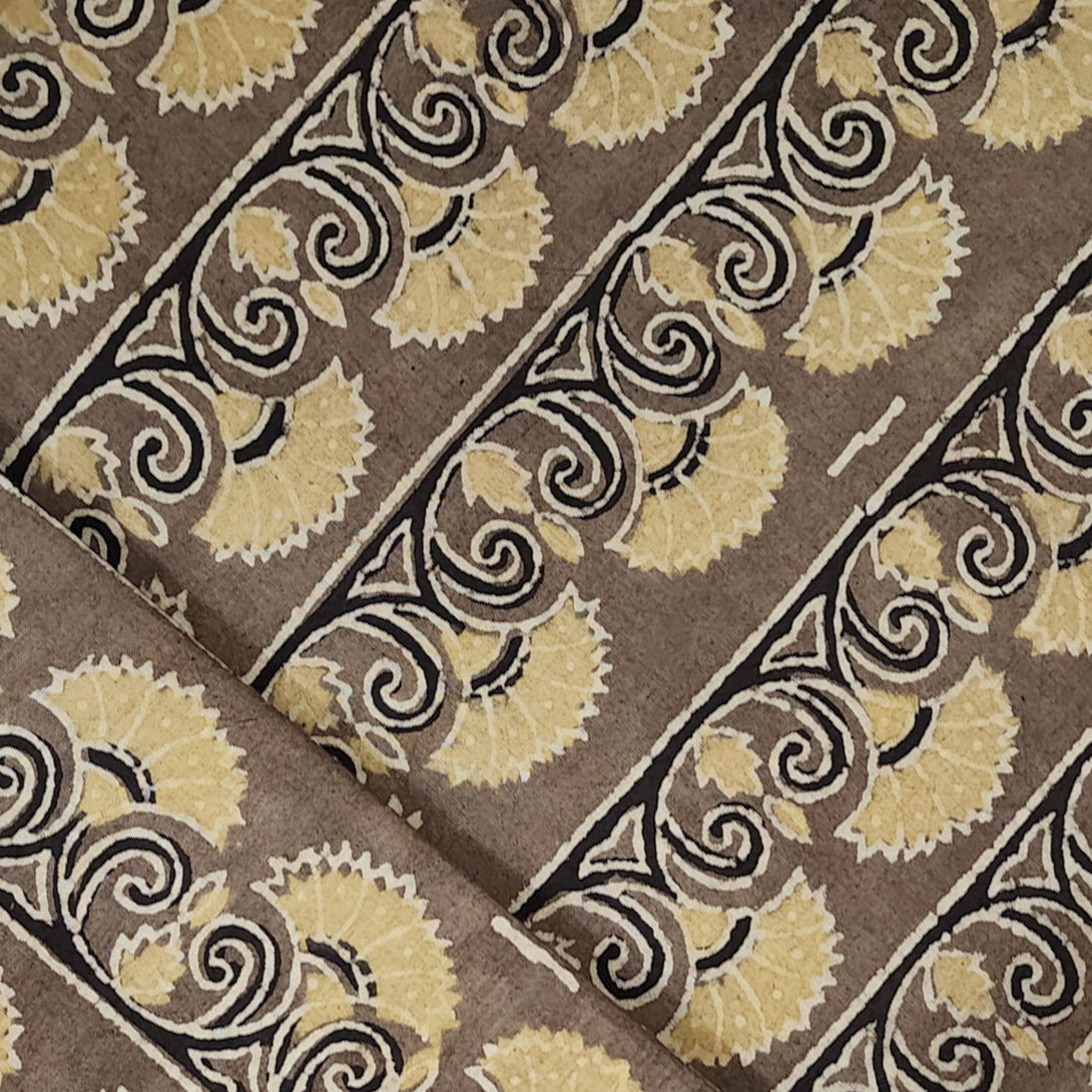Pure Cotton Ajrak Brown Dyed With Bush Border Horizontal Hand Block Print Fabric