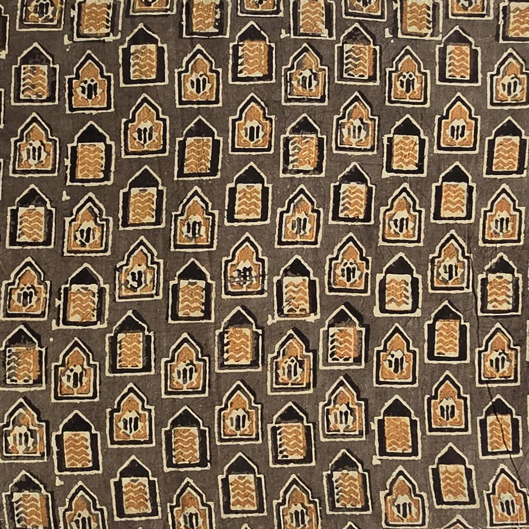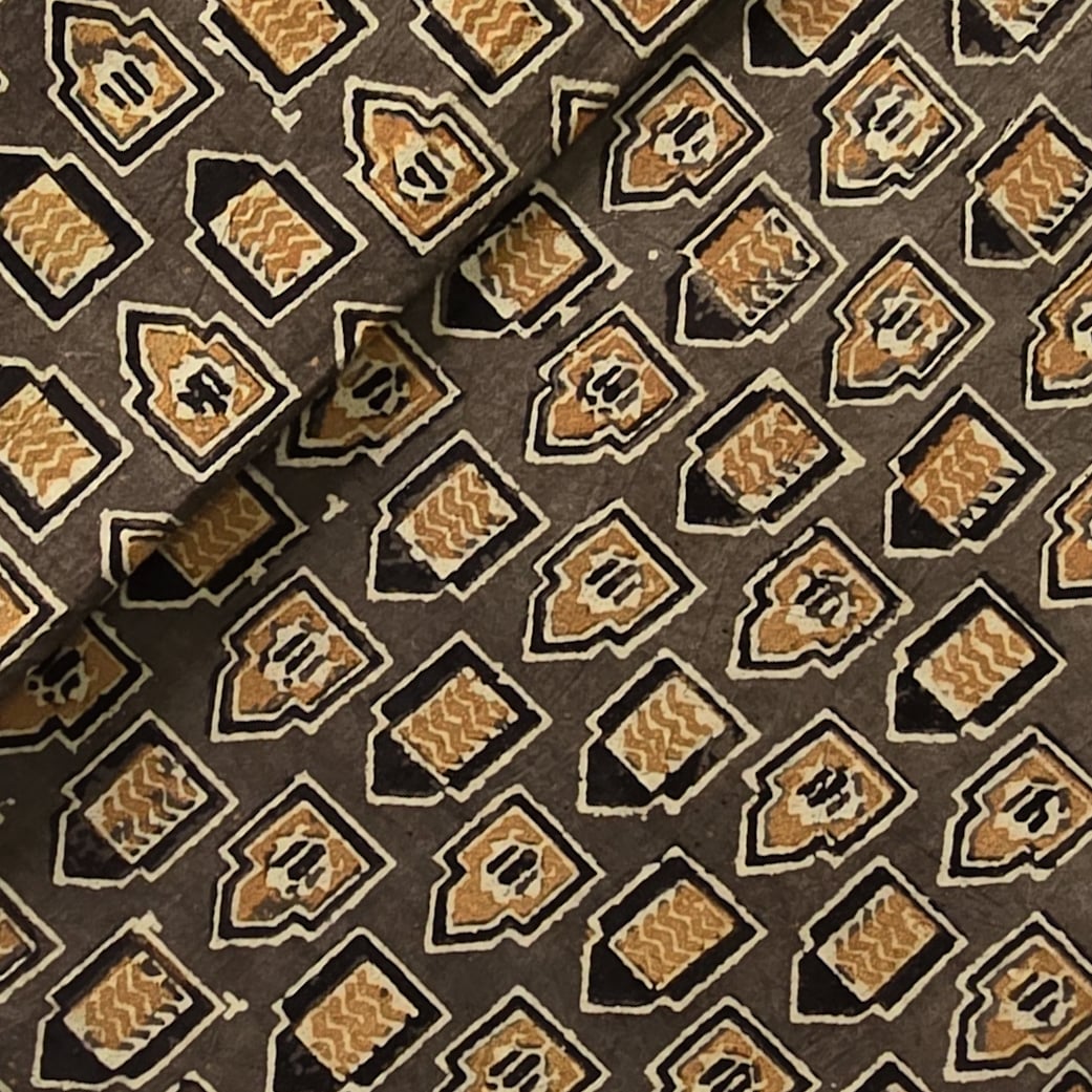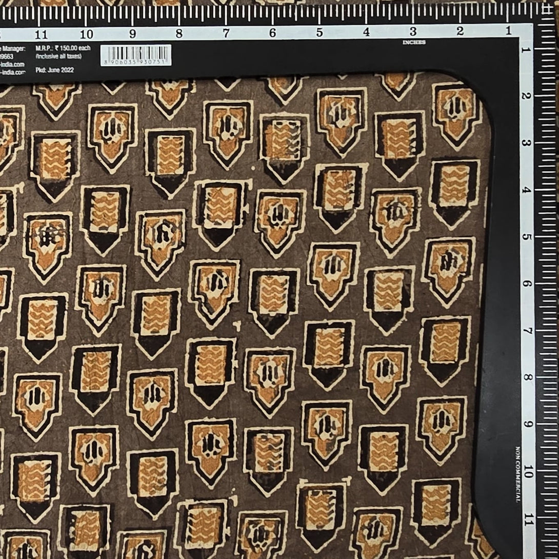 Pure Cotton Ajrak Brown With Black And Orange Mahal Hand Block Print Fabric