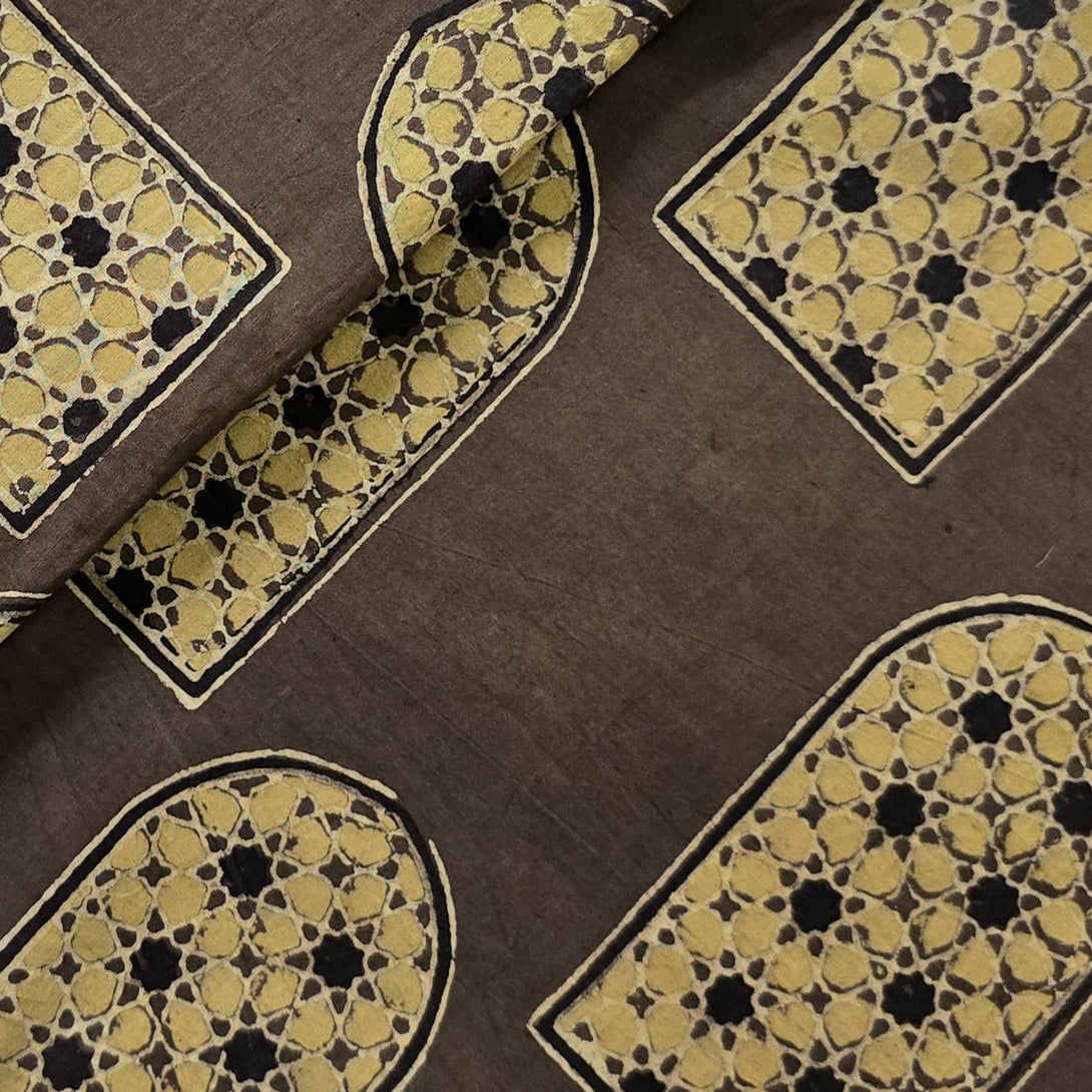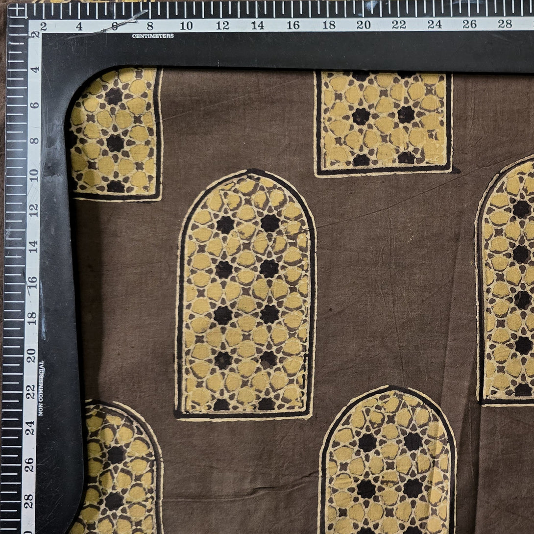 Pure Cotton Ajrak Brown With Black With Sandy Brown Window Hand Block Print Fabric