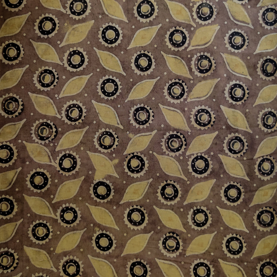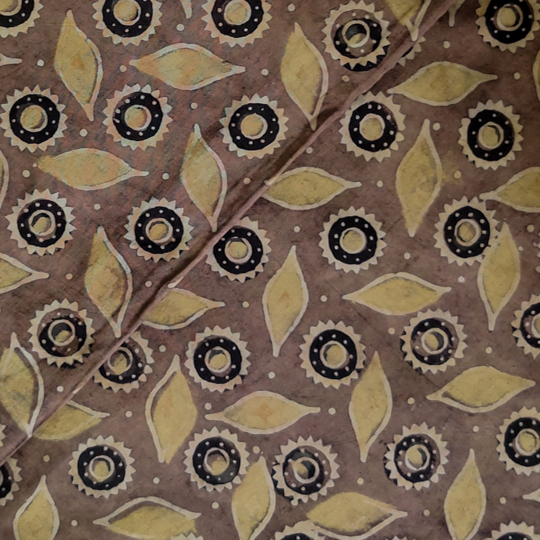 Pure Cotton Ajrak Brown With Leaves And Chakra Hand Block Print Fabric