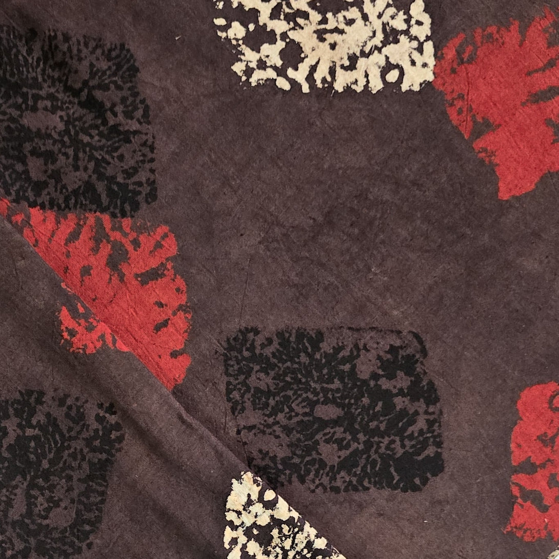 Pure Cotton Ajrak Brown With Rust Red And Black Patches Hand Block Print Fabric