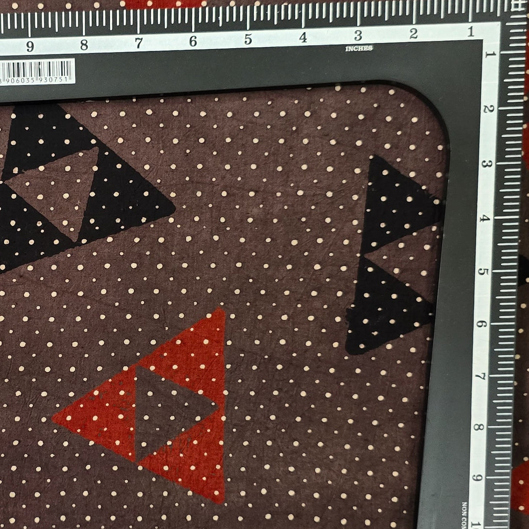 Pure Cotton Ajrak Brown With Rust Red And Black Triangle Hand Block Print Fabric