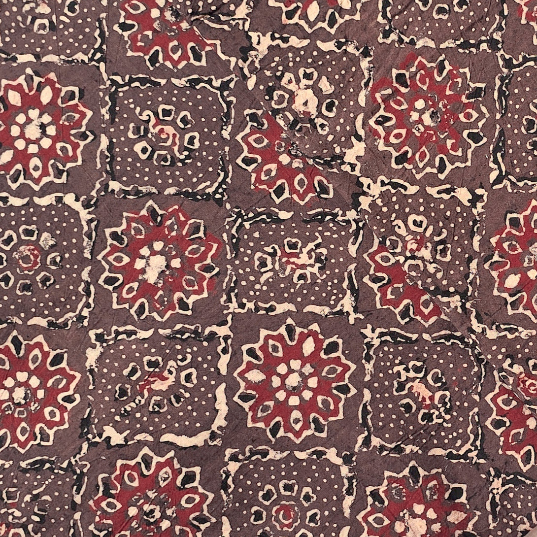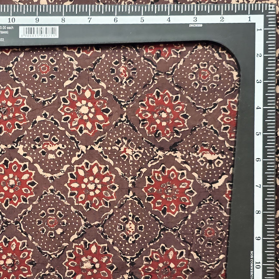 Pure Cotton Ajrak Brown With Rust Red Intricate Design Hand Block Print Fabric