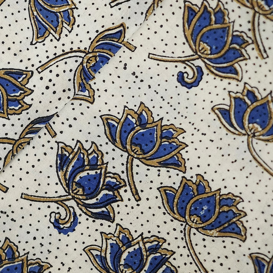 Pure Cotton Ajrak Cream With Kamal Hand Block Print Fabric