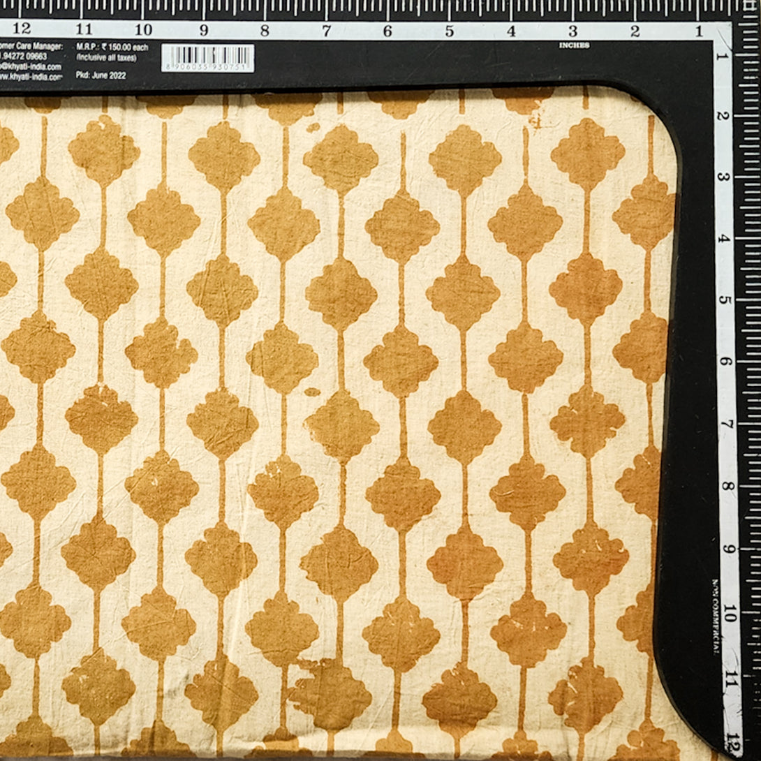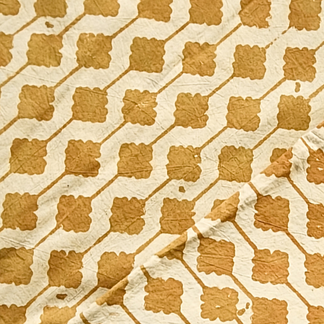 Pure Cotton Ajrak Cream With Mustard Creeper Hand Block Print Fabric