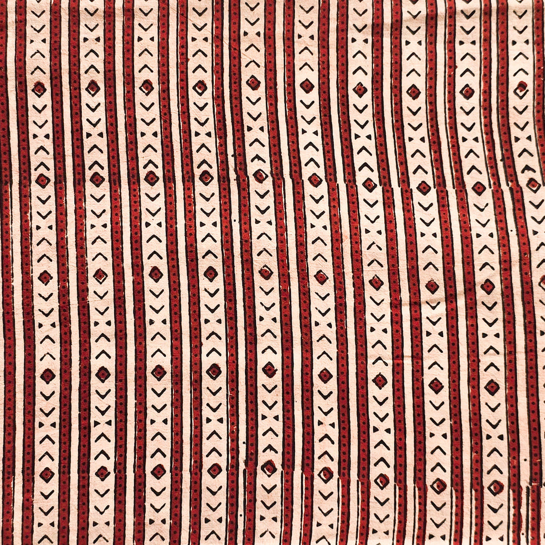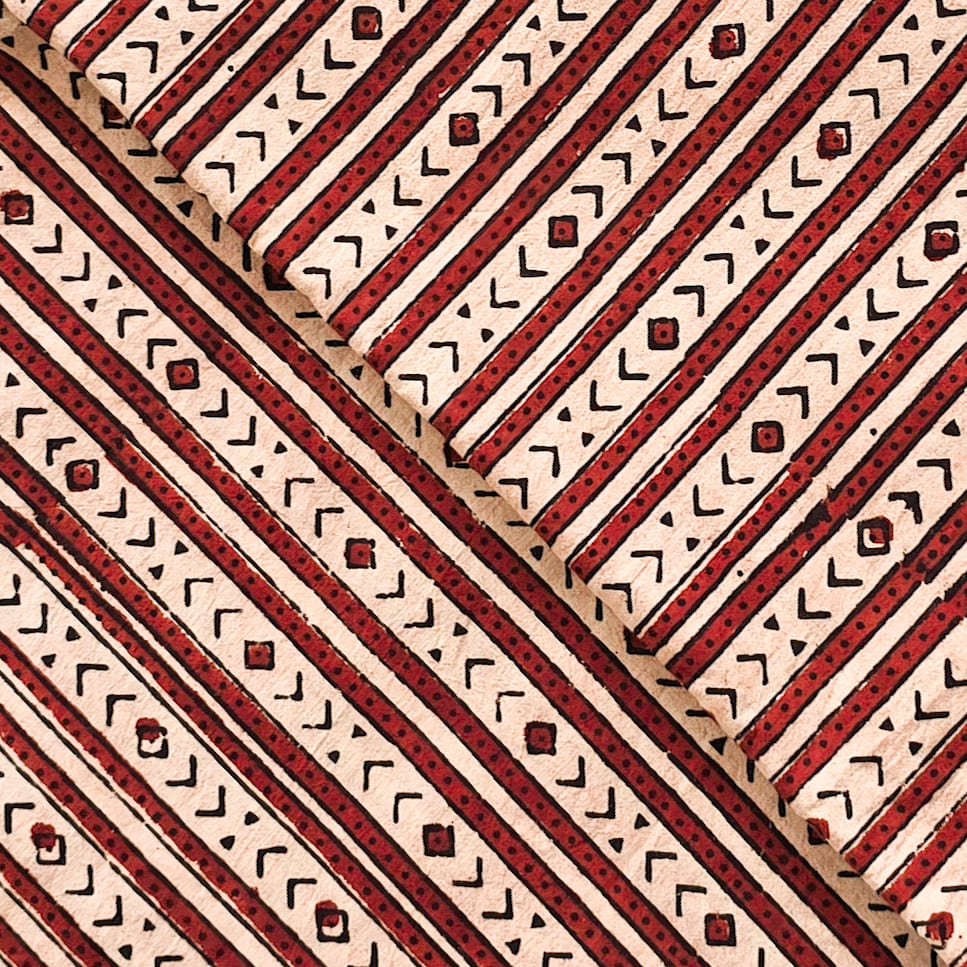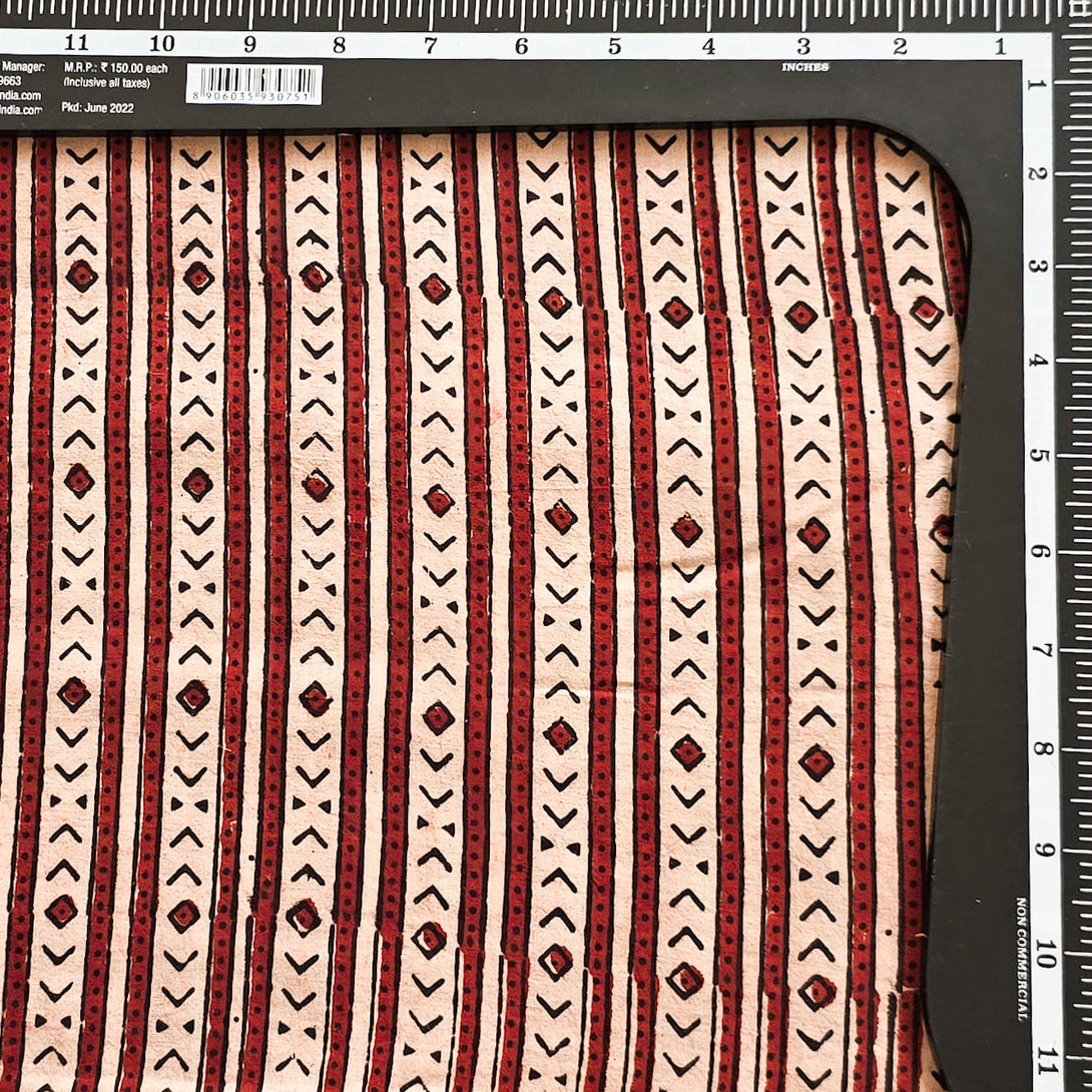 Pure Cotton Ajrak Cream With Red Border Stripes Hand Block Print Fabric