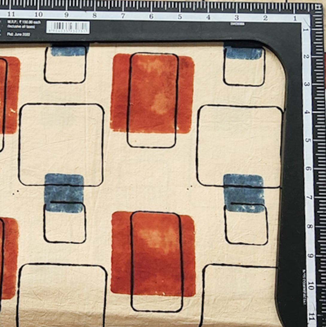Pure Cotton Ajrak Cream With Red geometrical Design Hand Block Print Fabric
