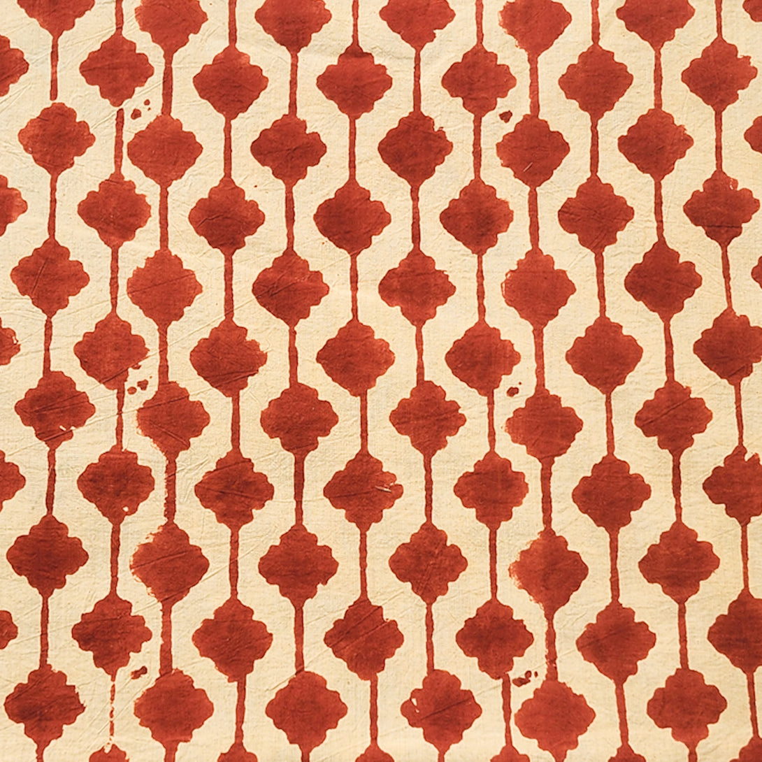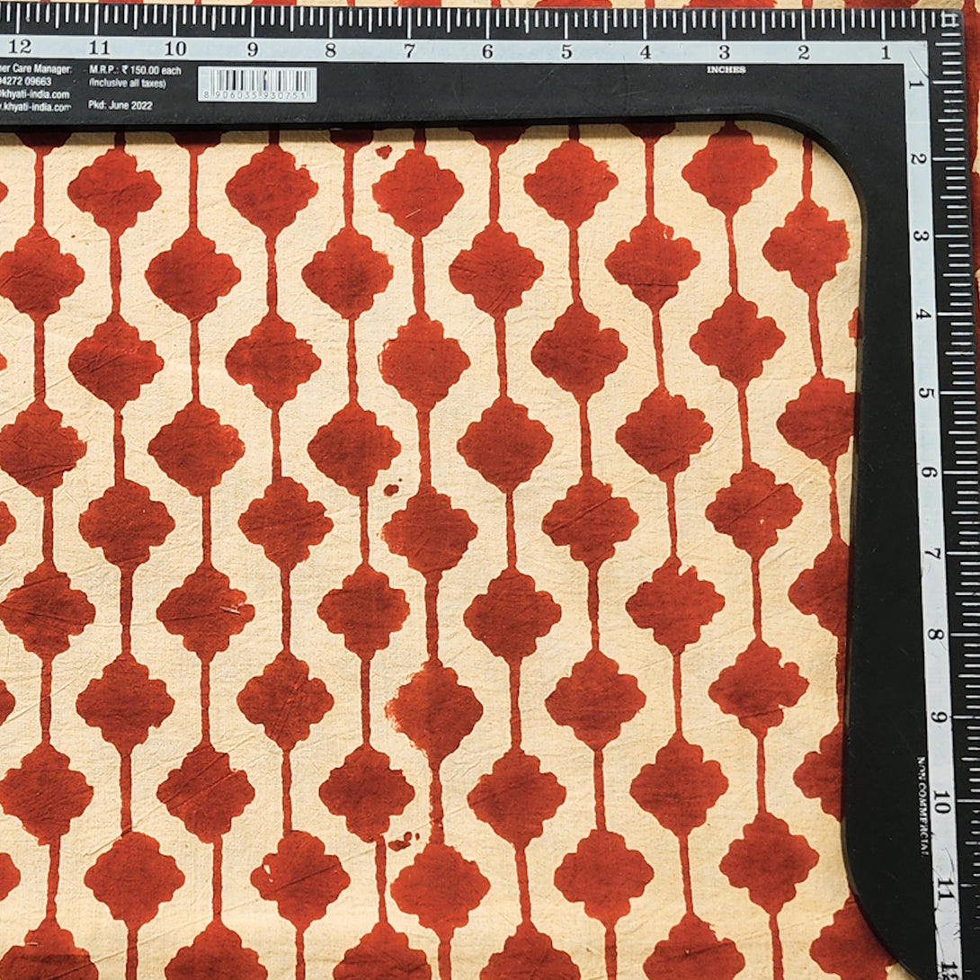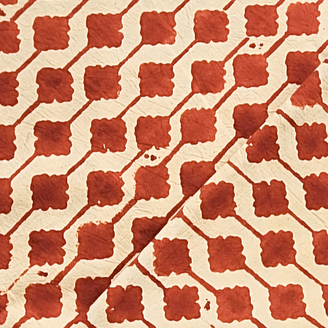 Pure Cotton Ajrak Cream With Rust Red Creeper Hand Block Print Fabric