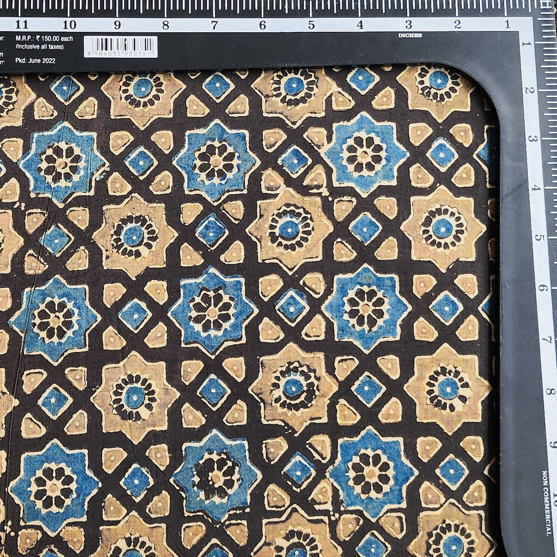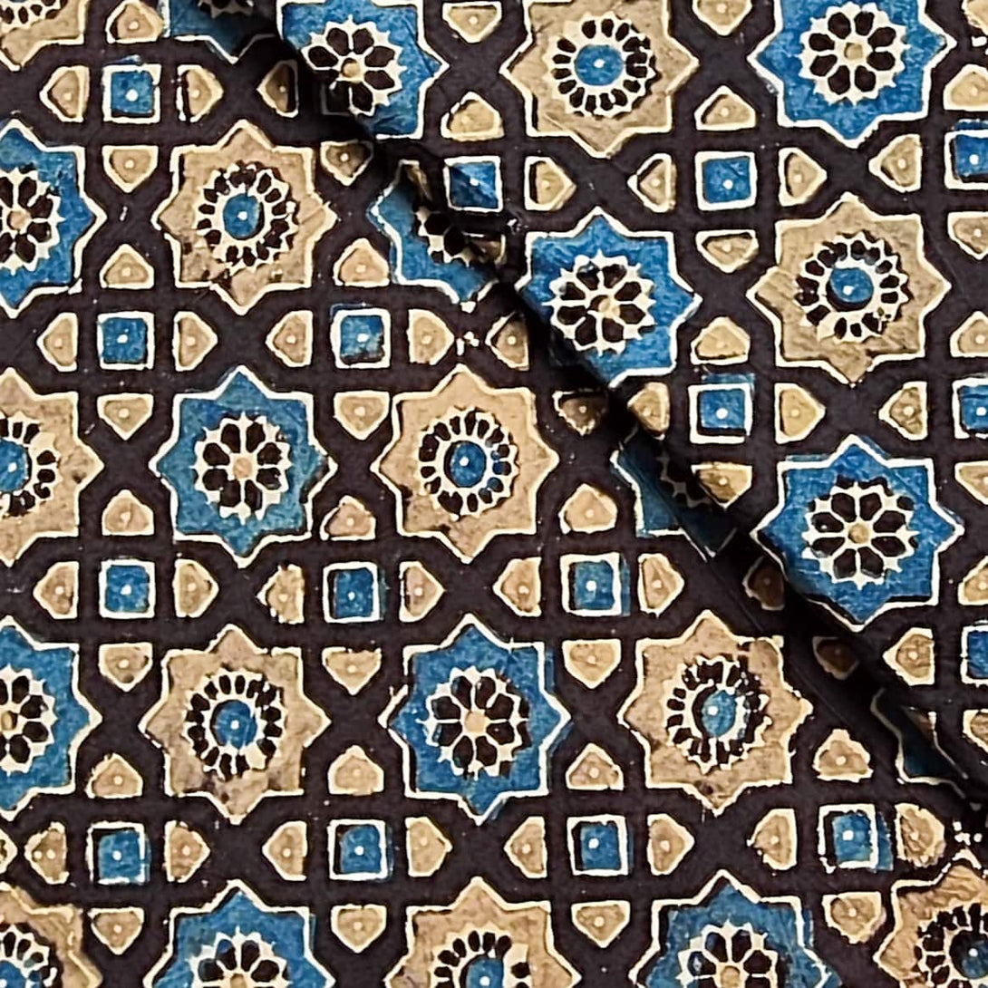 Pure Cotton Ajrak Dark Brown With Star Tile Hand Block Print Fabric