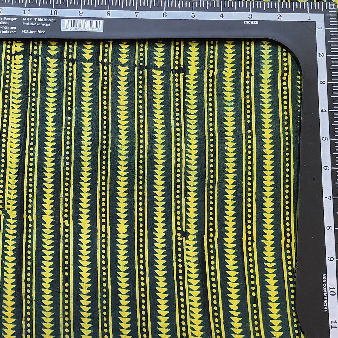 Pure Cotton Ajrak Dark Green With Border Stipes Hand Block Print Fabric