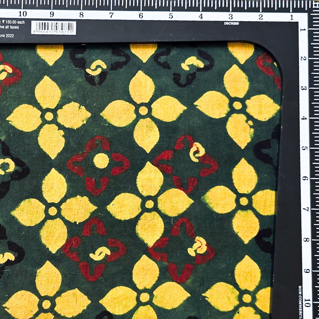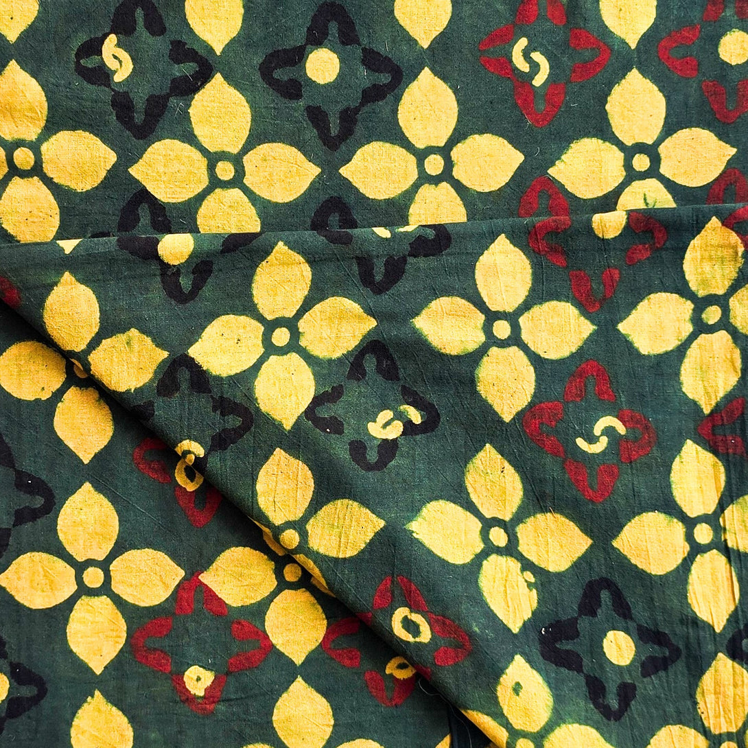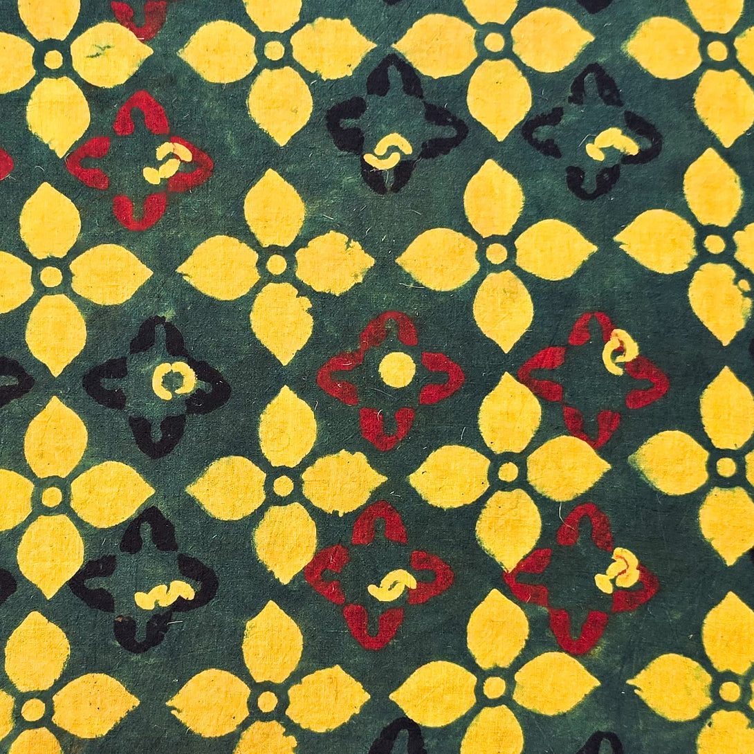 Pure Cotton Ajrak Geometrical Design Flower Green Hand Block Print Fabric