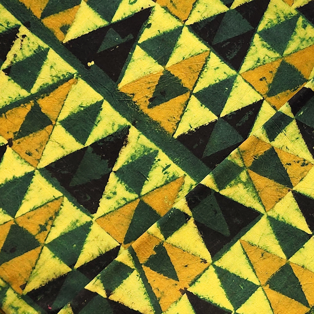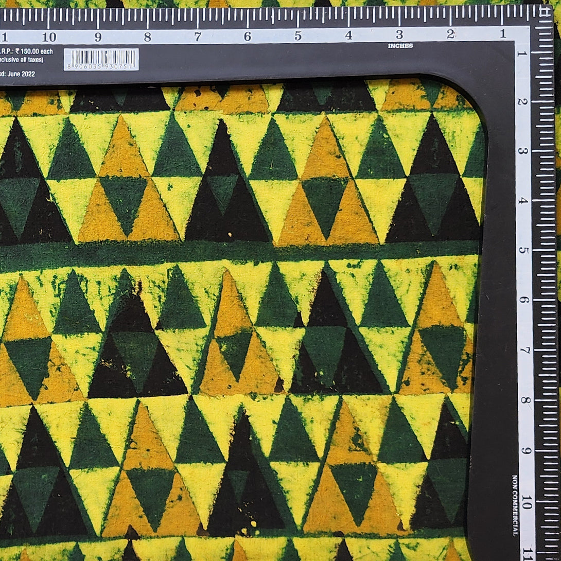 Pure Cotton Ajrak Green With Black And Yellow Triangles Hand Block Print Fabric