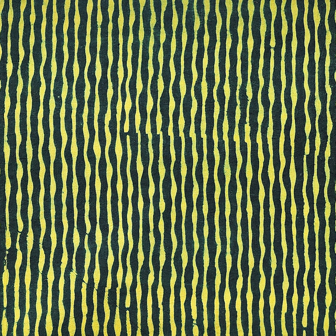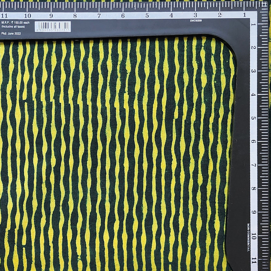 Pure Cotton Ajrak Green With Yellow Small Weaves Stripes Hand Block Print Fabric