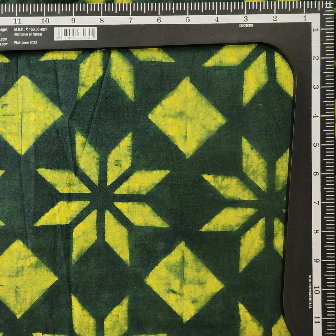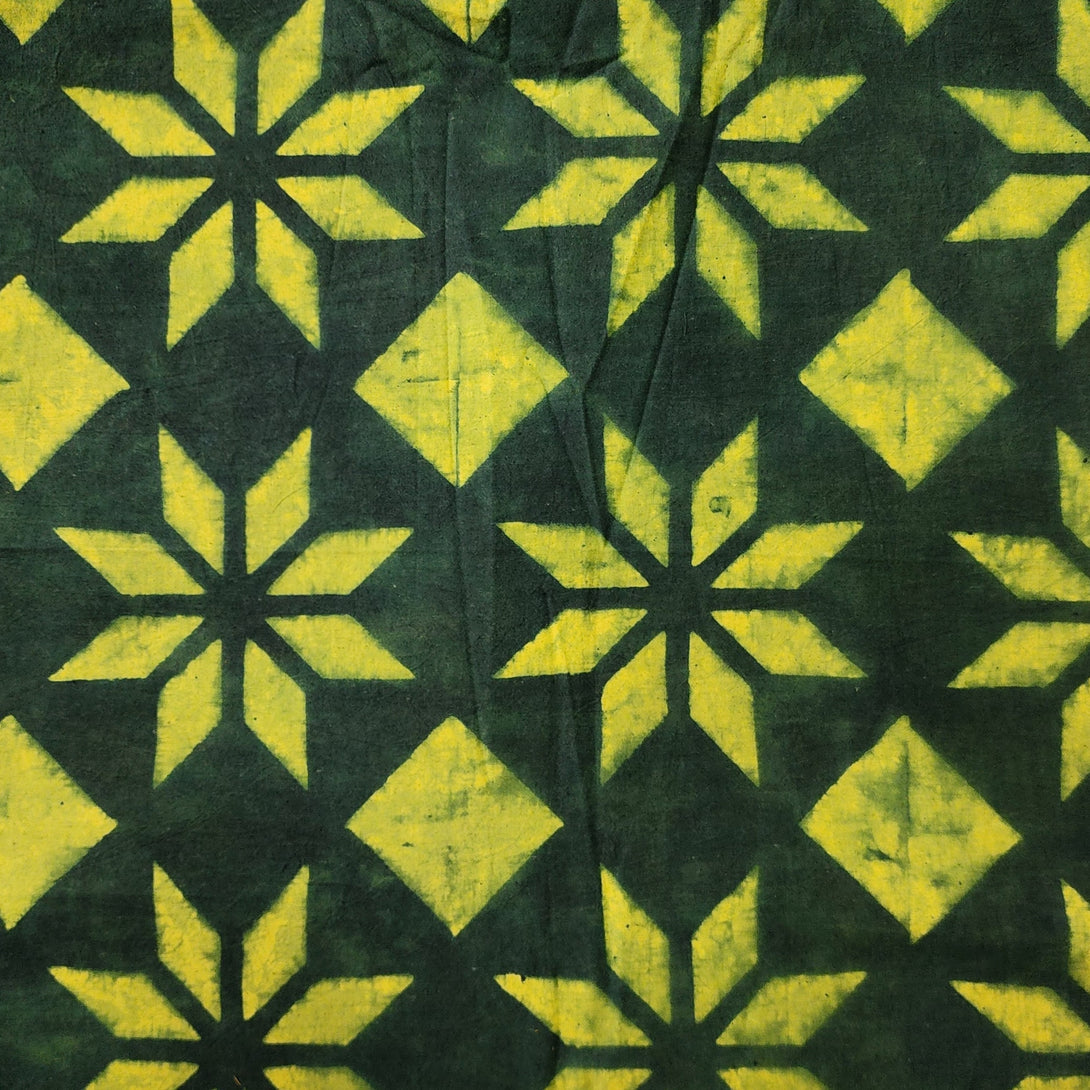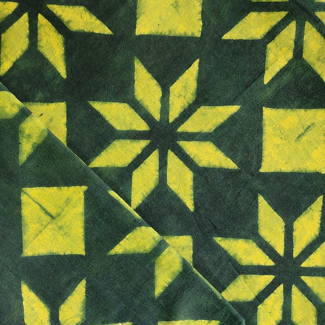 Pure Cotton Ajrak Green With Yellow Stars Hand Block Print Fabric