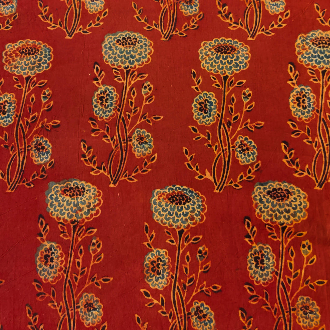 Pure Cotton Ajrak Madder With Long Genda Phool Plant Hand Block Print Fabric