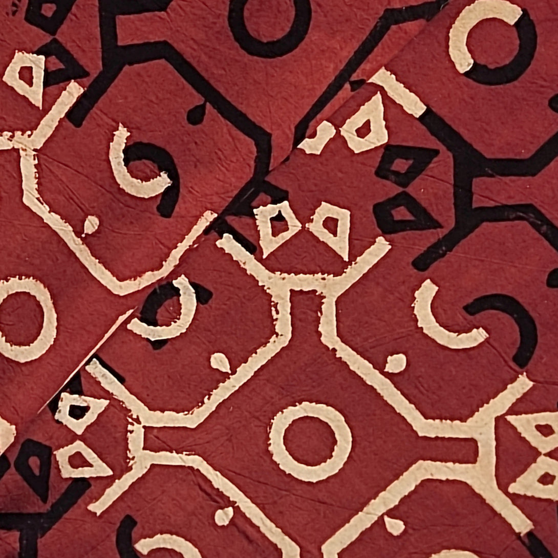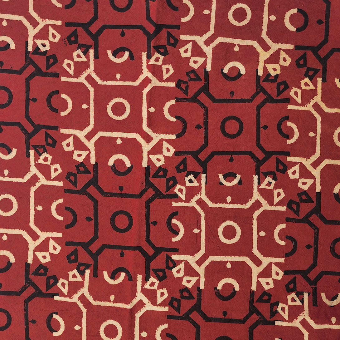 Pure Cotton Ajrak Maroon With Black And Cream Geometric Design Hand Block Print Fabric