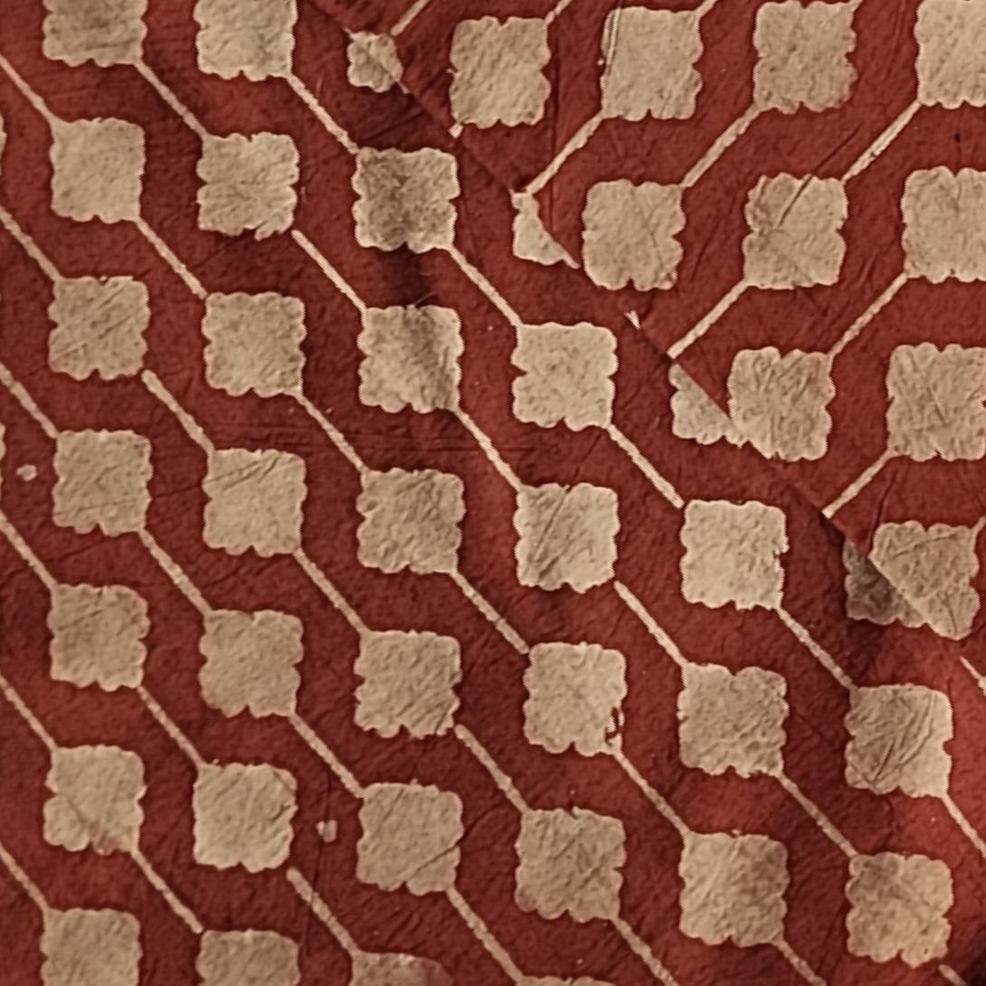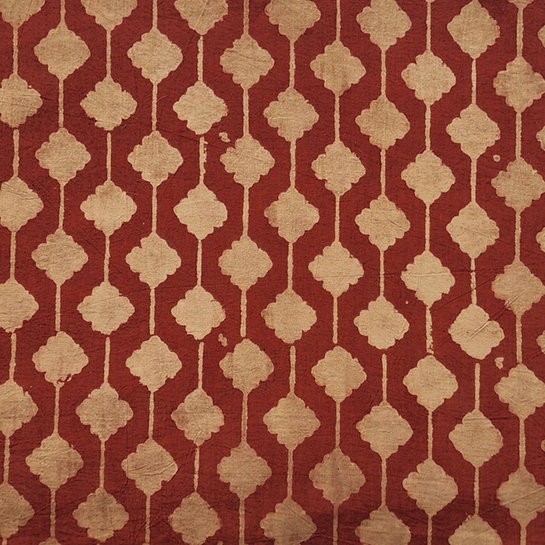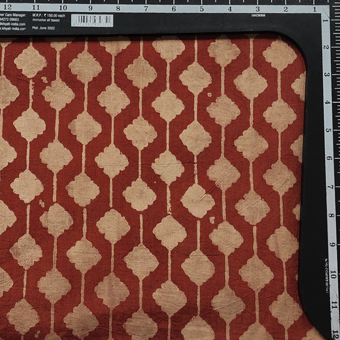 Pure Cotton Ajrak Rust Maroon With Cream Creeper Design Hand Block Print Fabric