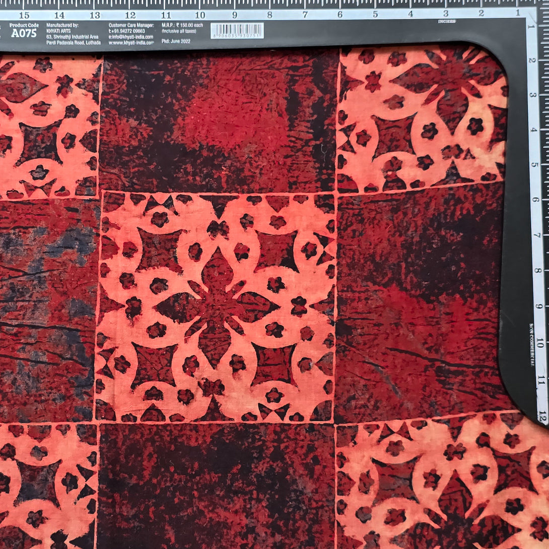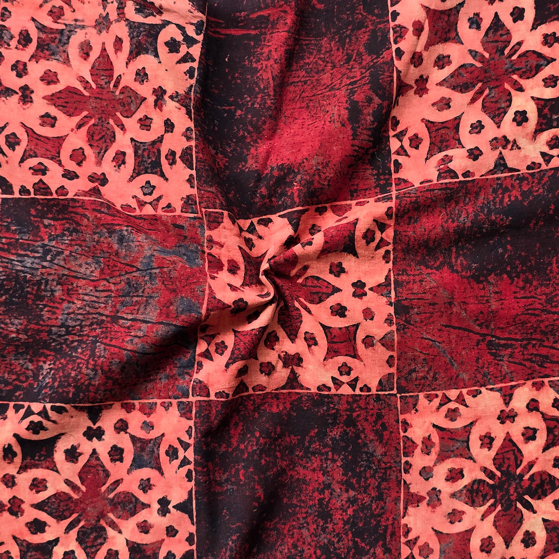 Pure Cotton Ajrak Maroon With Flower Design Blocks Hand Block Print Fabric