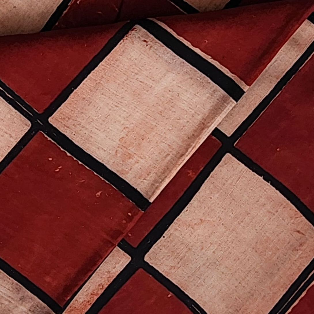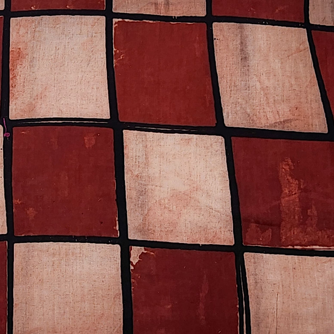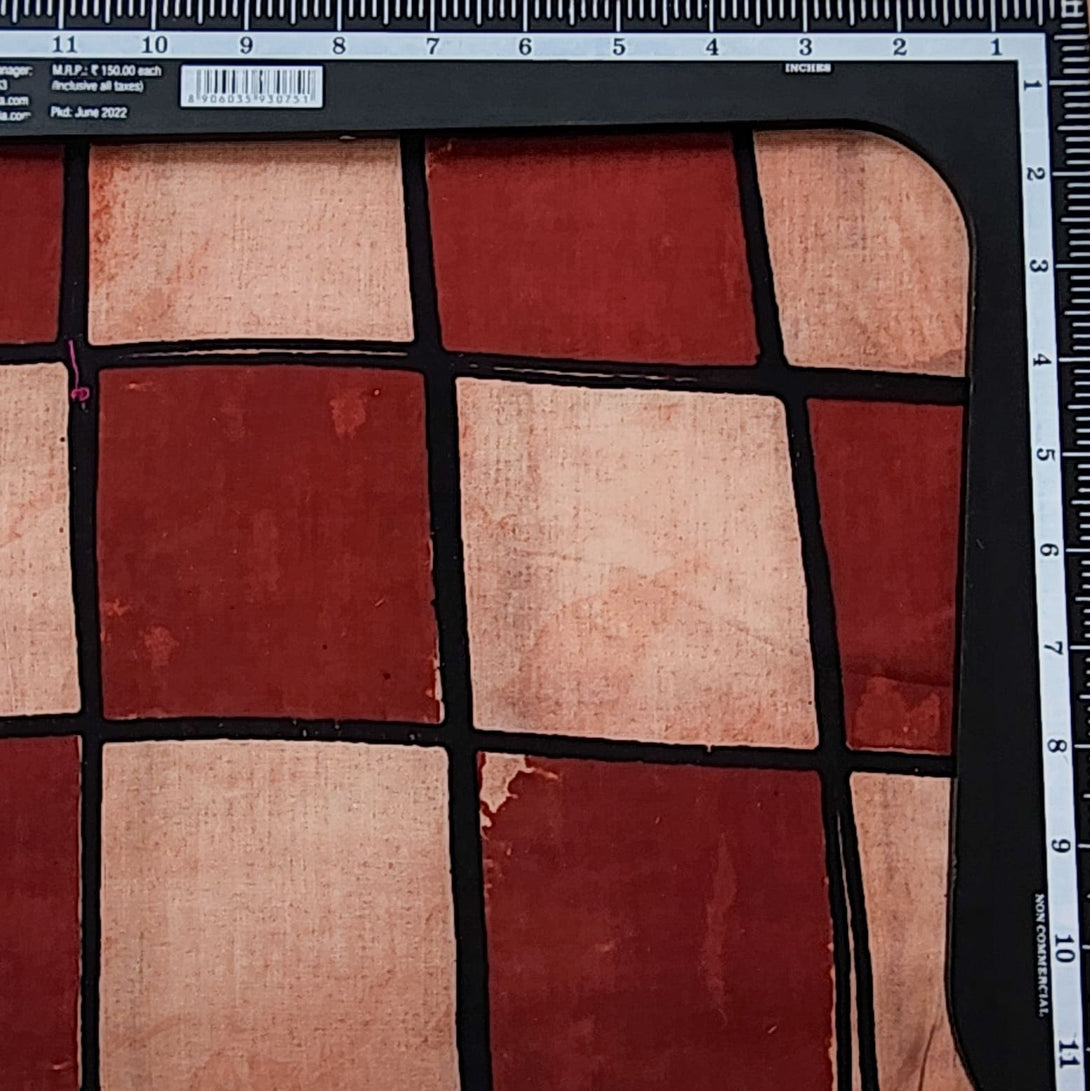 Pure Cotton Ajrak Red With Beige Square Hand Block Print Fabric
