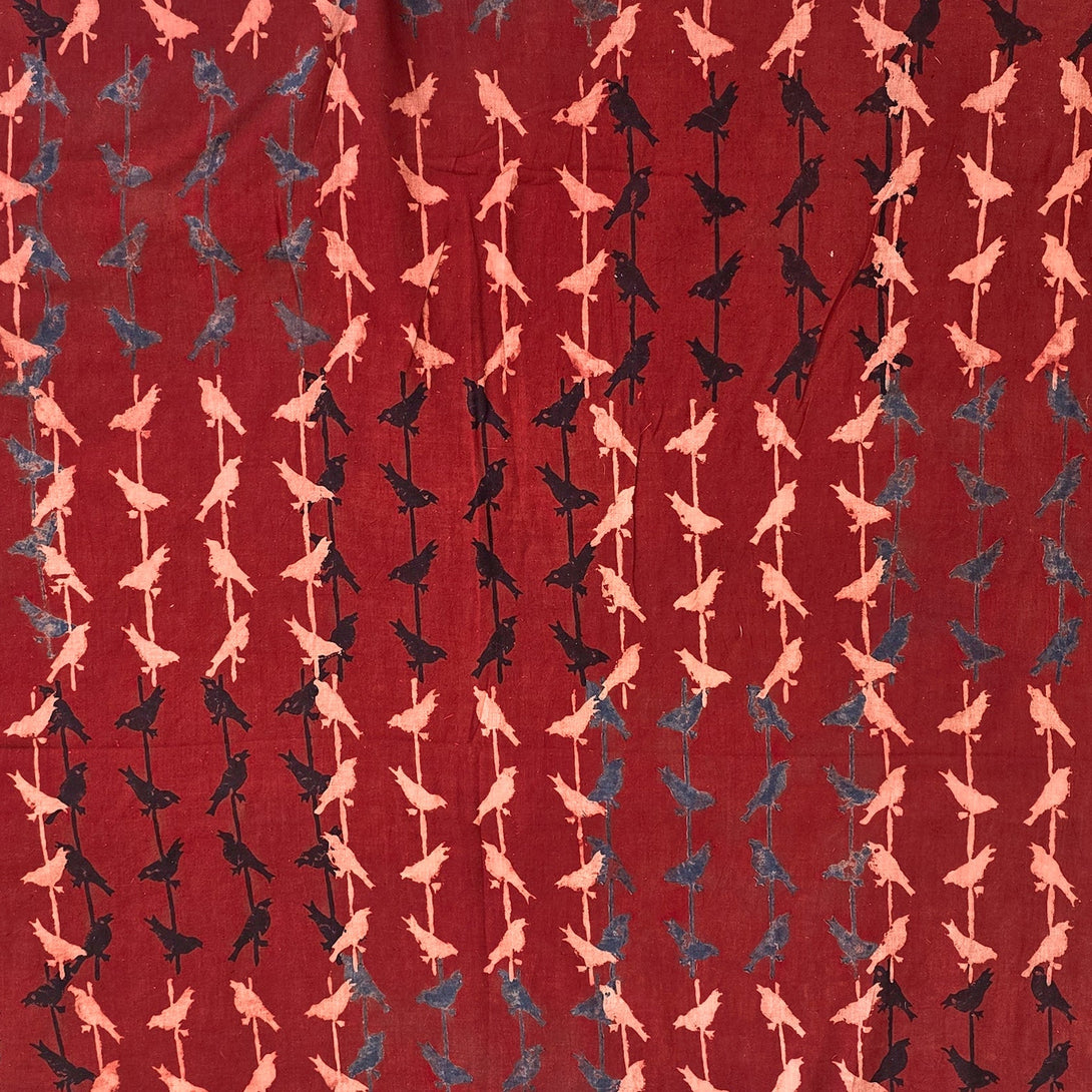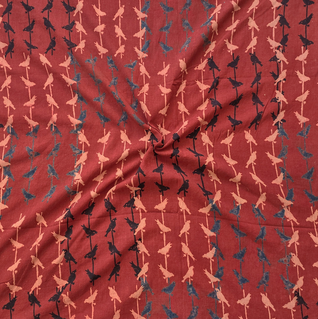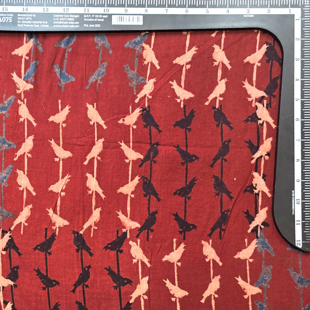 Pure Cotton Ajrak Red With white black and Blue birds stripes Hand Block Print Fabric
