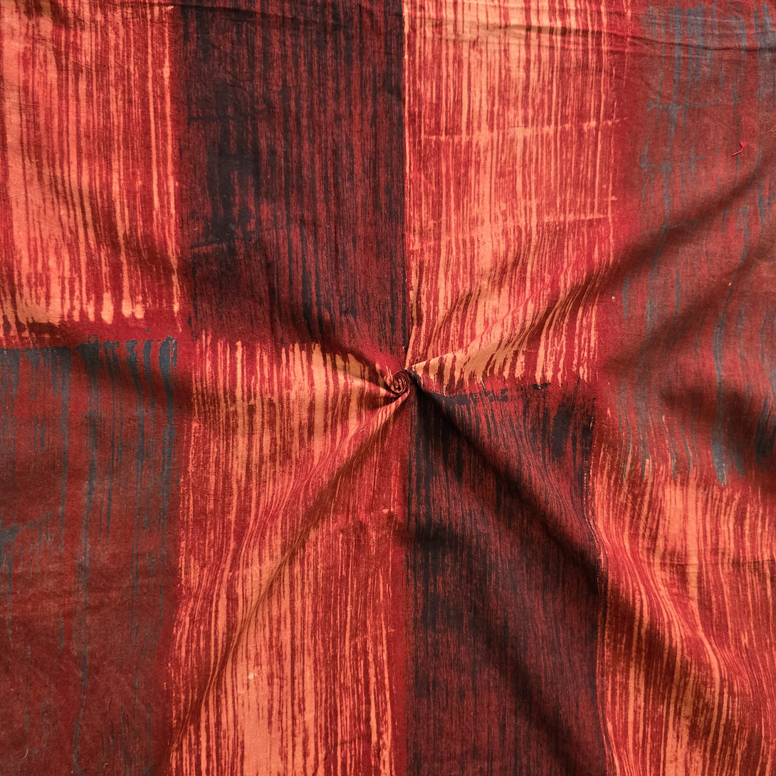Pure Cotton Ajrak Rust Red And Black Painted Brush Design Hand Block Print Fabric