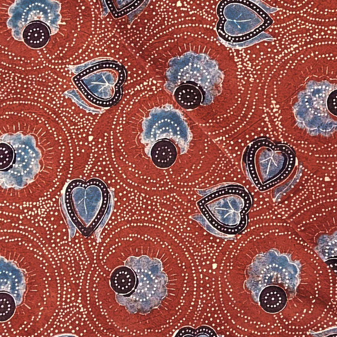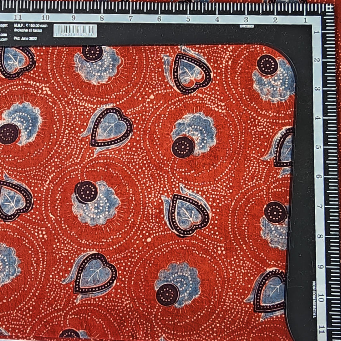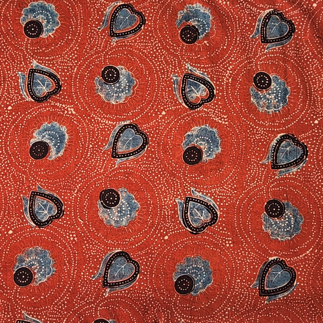 Pure Cotton Ajrak Rust Red And Blue Heart Flower Jaal Hand Block Print Fabric