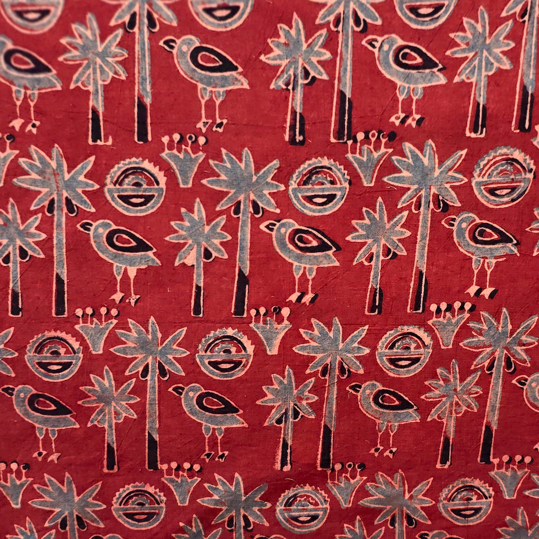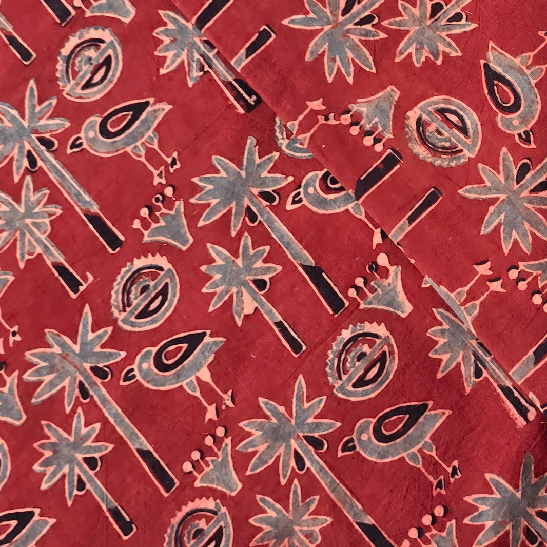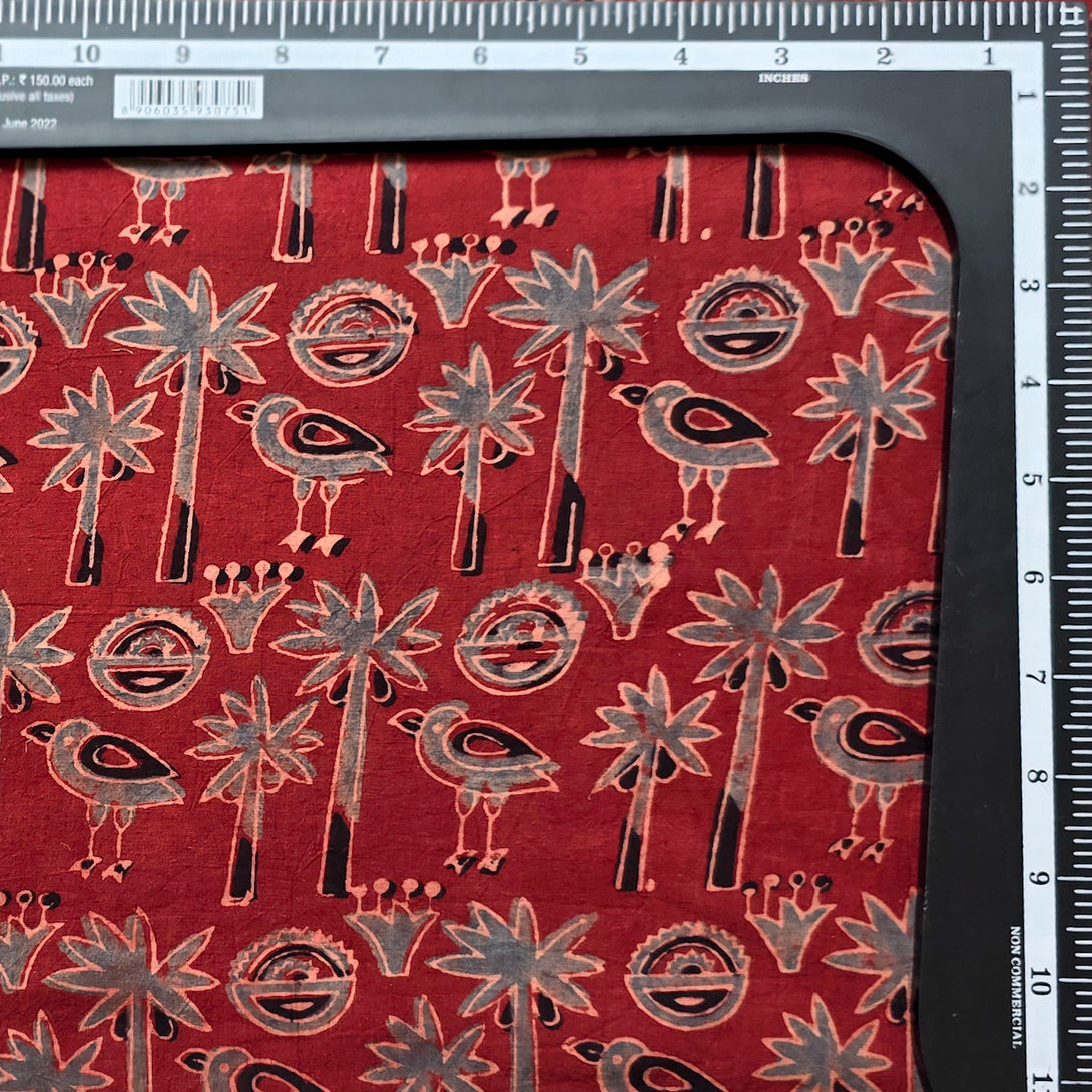 Pure Cotton Ajrak Rust Red With Rust Blue Coconut Tree Farm Hand Block Print Fabric