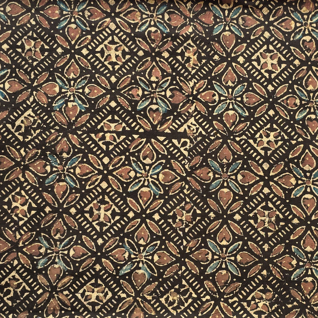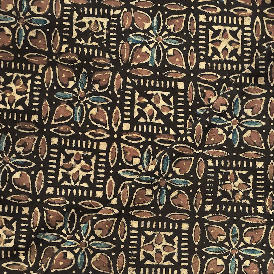 Pure Cotton Ajrak Sandy Brown With Intricate Design Hand Block Print Fabric