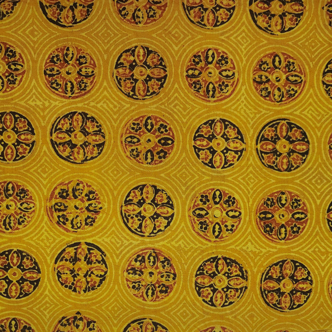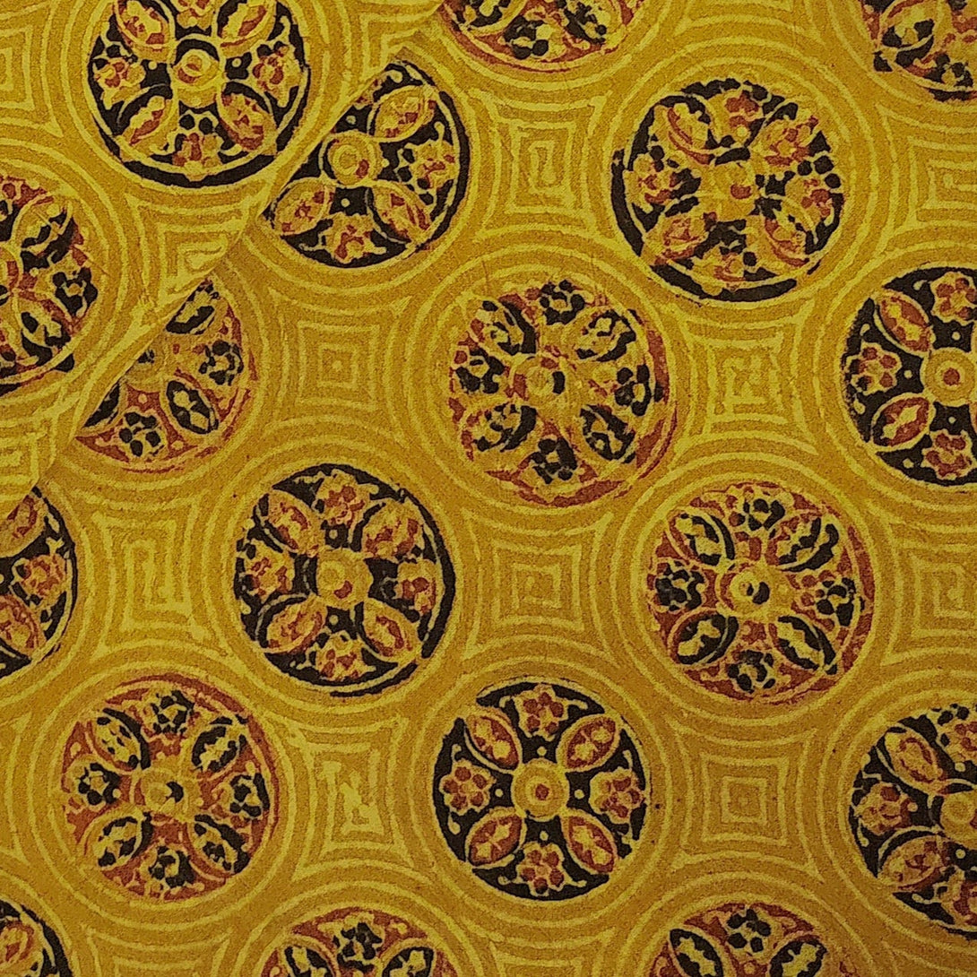 Pure Cotton Ajrak Tumeric Dyed With All Over Chakra Pattern Hand Block Print Fabric
