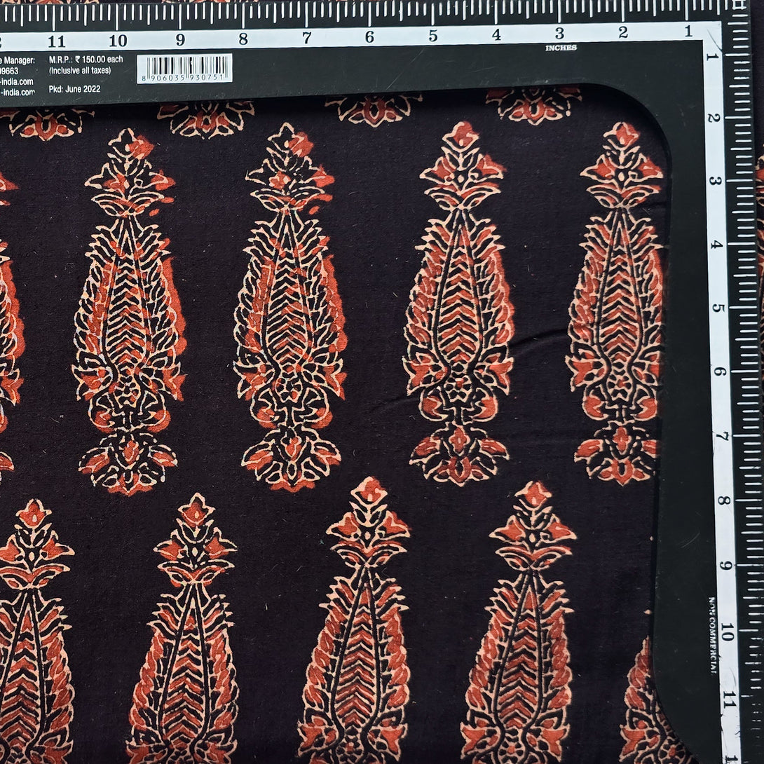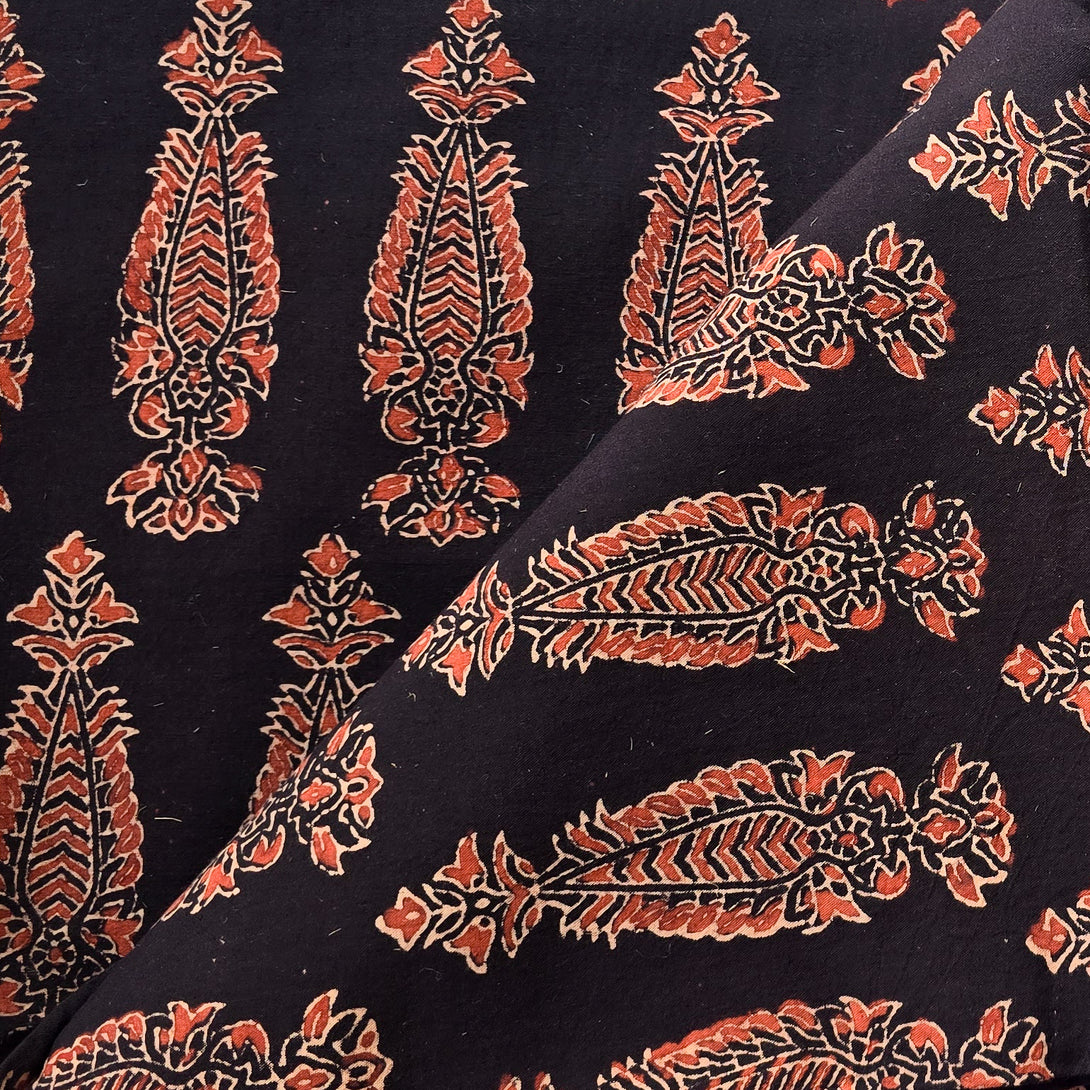 Pure Cotton Ajrak Vegetable Dyed Black With Big Design Motif Hand Block Print Fabric