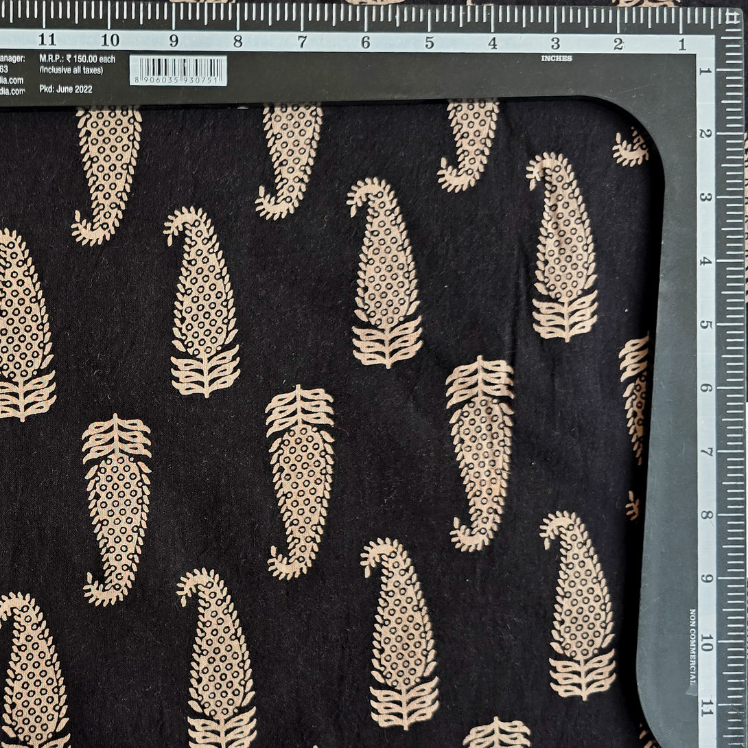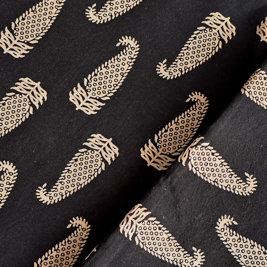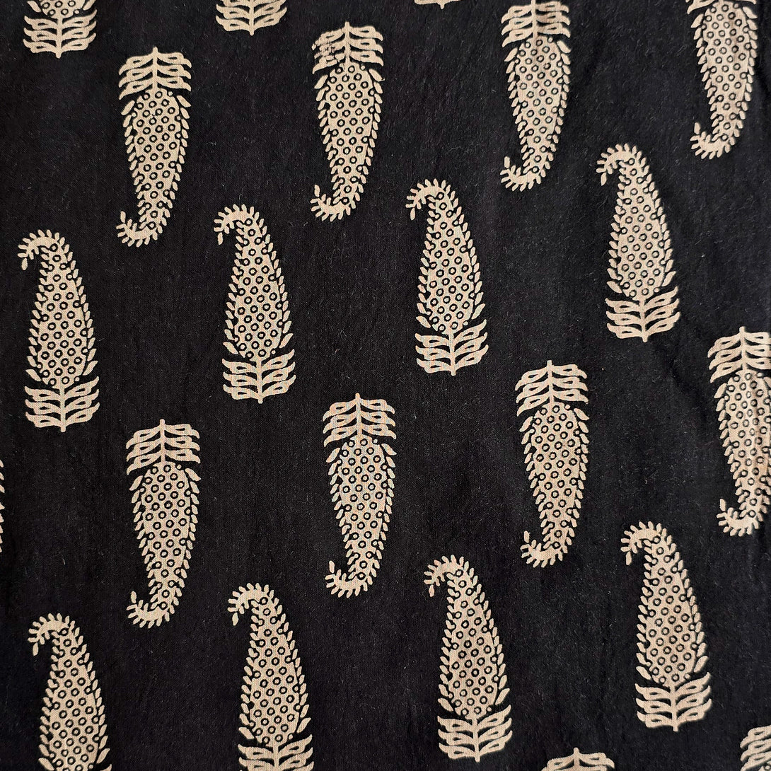 Pure Cotton Ajrak Vegetable Dyed Black With Cream Kairi Motifs Hand Block Print Fabric