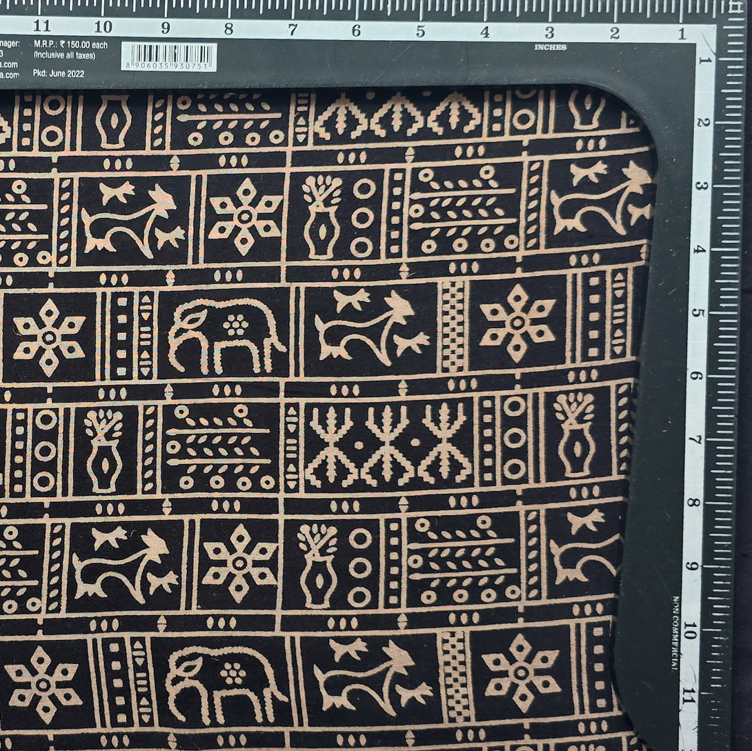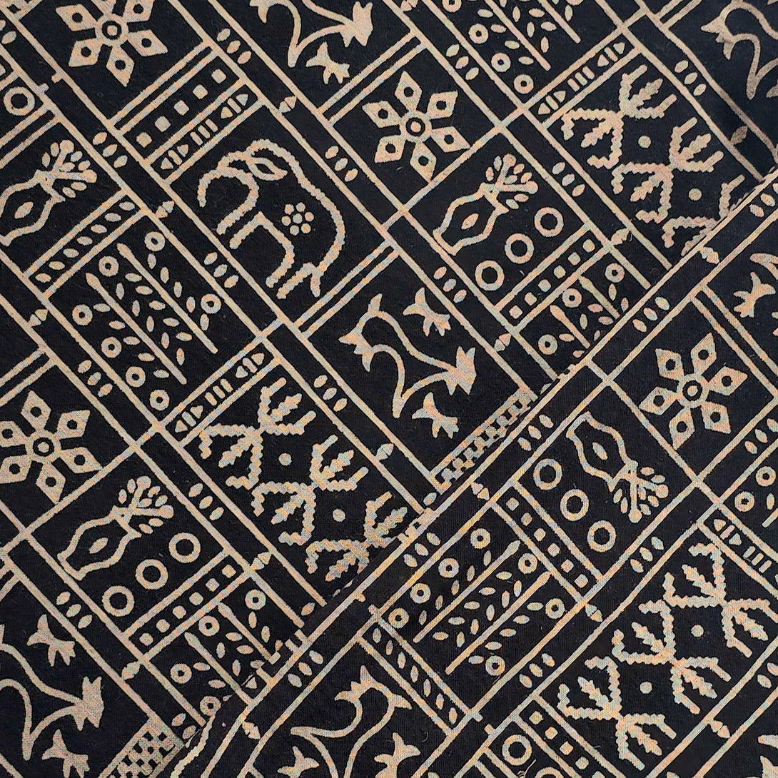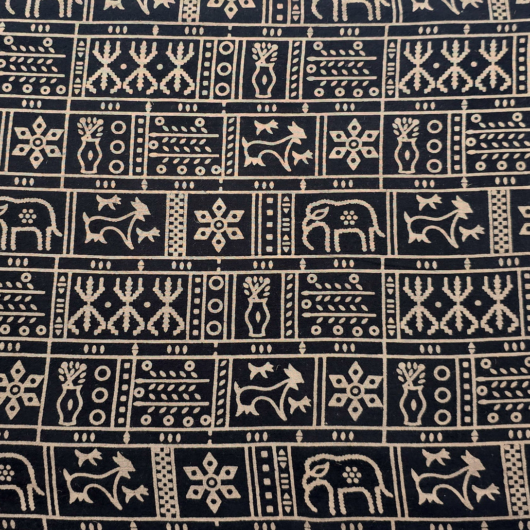 Pure Cotton Ajrak Vegetable Dyed Black With Warli Design Hand Block Print Fabric