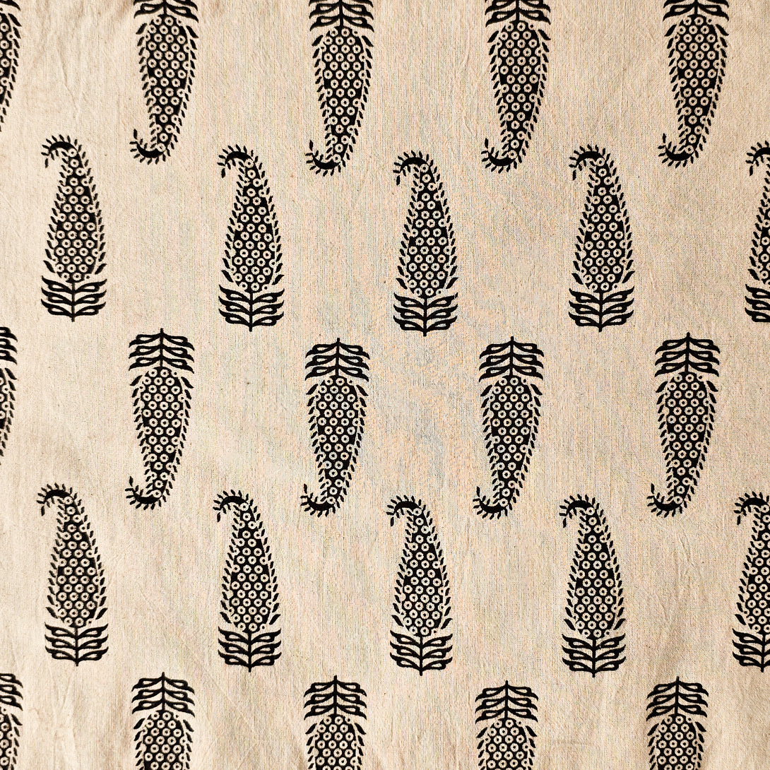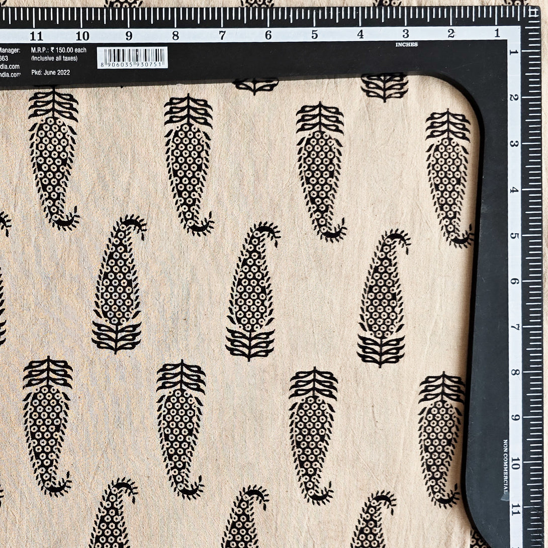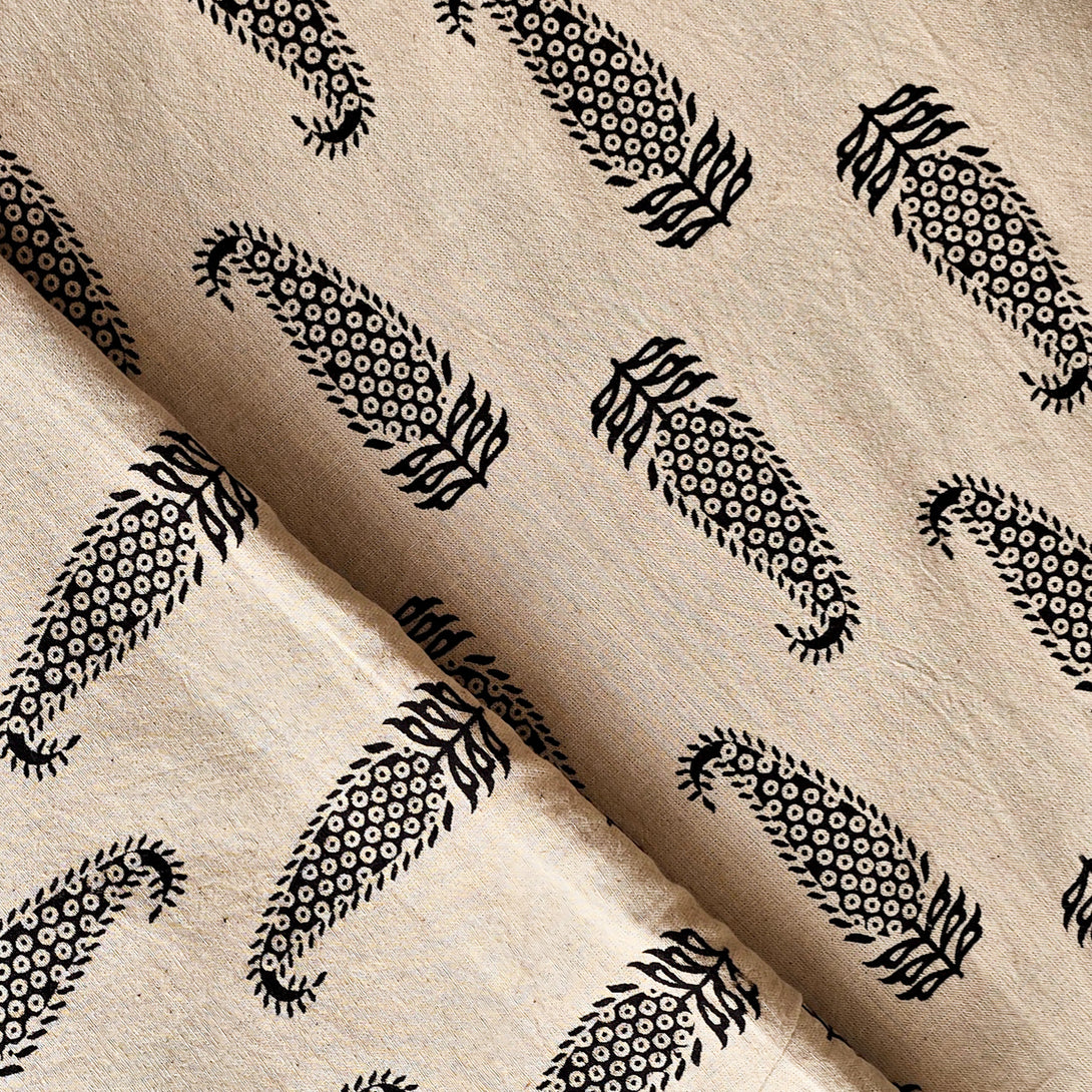 Pure Cotton Ajrak Vegetable Dyed Cream With Black Kairi Motifs Hand Block Print Fabric