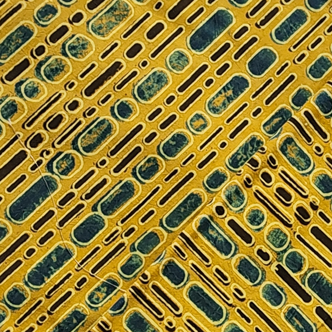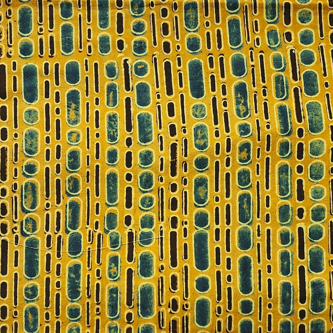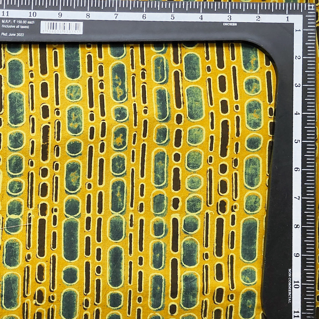 Pure Cotton Ajrak Yellow With Green Big And Small Bubbles Hand Block Print Fabric