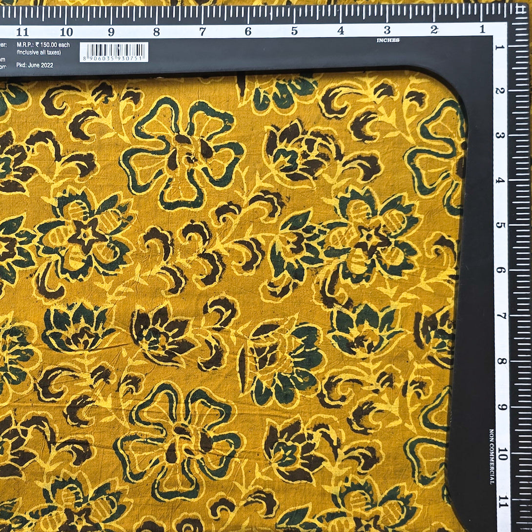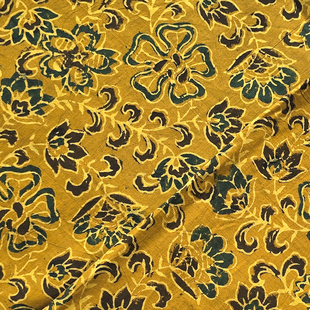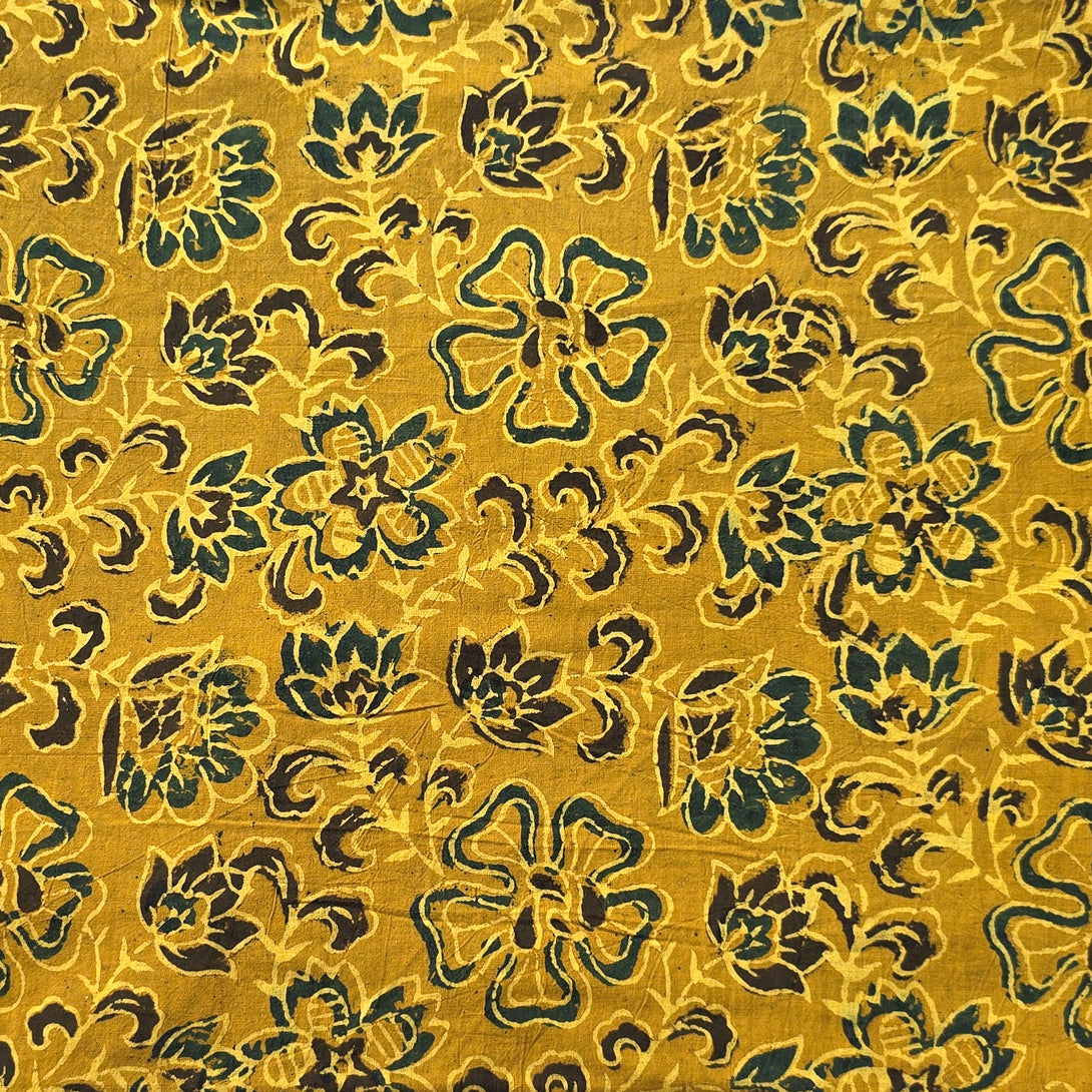 Pure Cotton Ajrak Yellow With Green Flower Jaal Hand Block Print Fabric