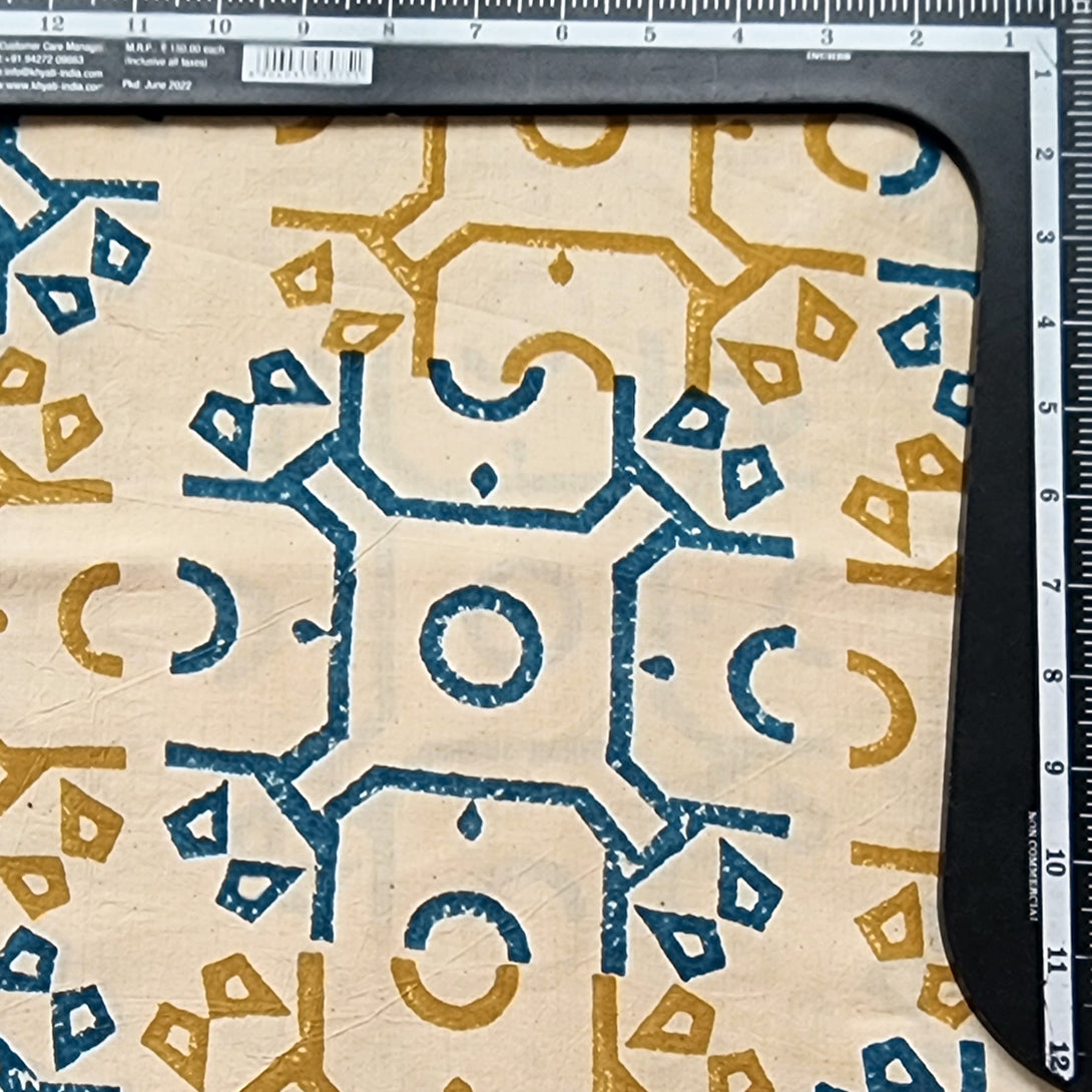 Pure Cotton Ajrak Yellow With Rust Blue Geometric Design Hand Block Print Fabric
