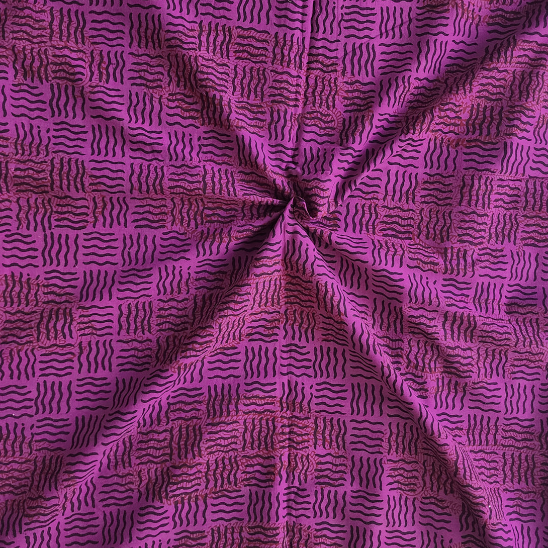 Pure Cotton Bagh Purple With Tile Design With With Self Design Big Kairi Hand Block Print Fabric