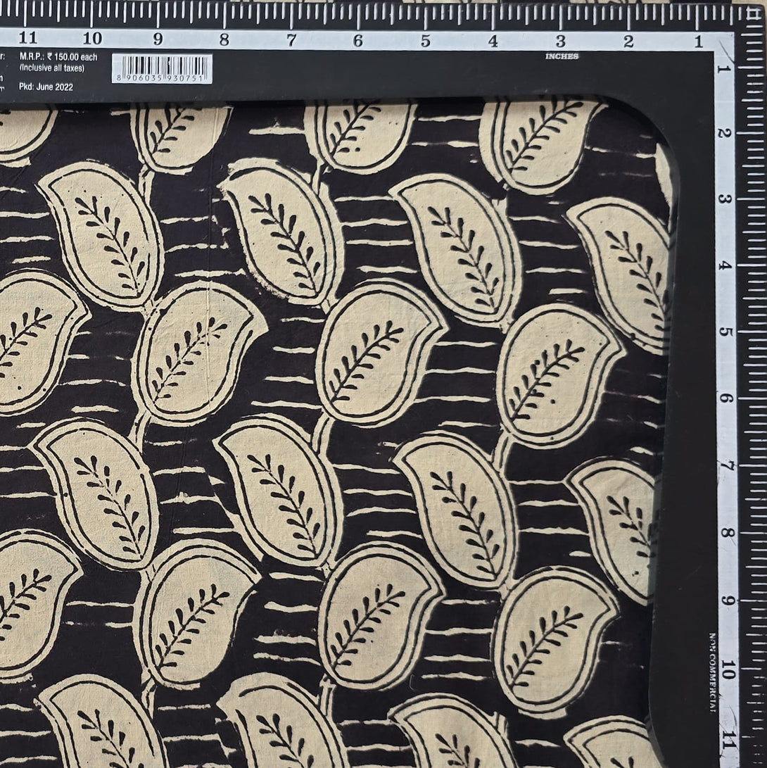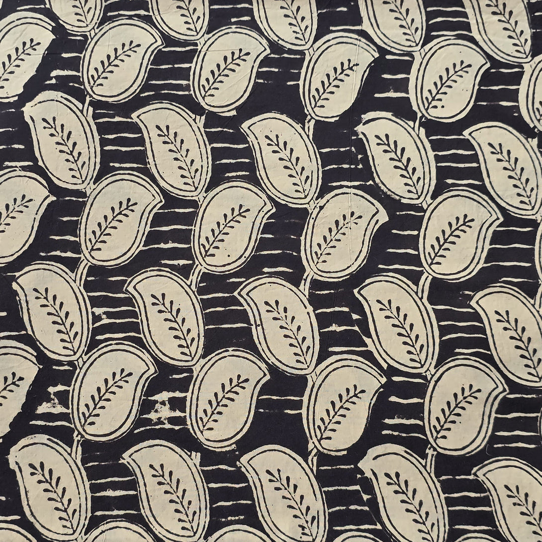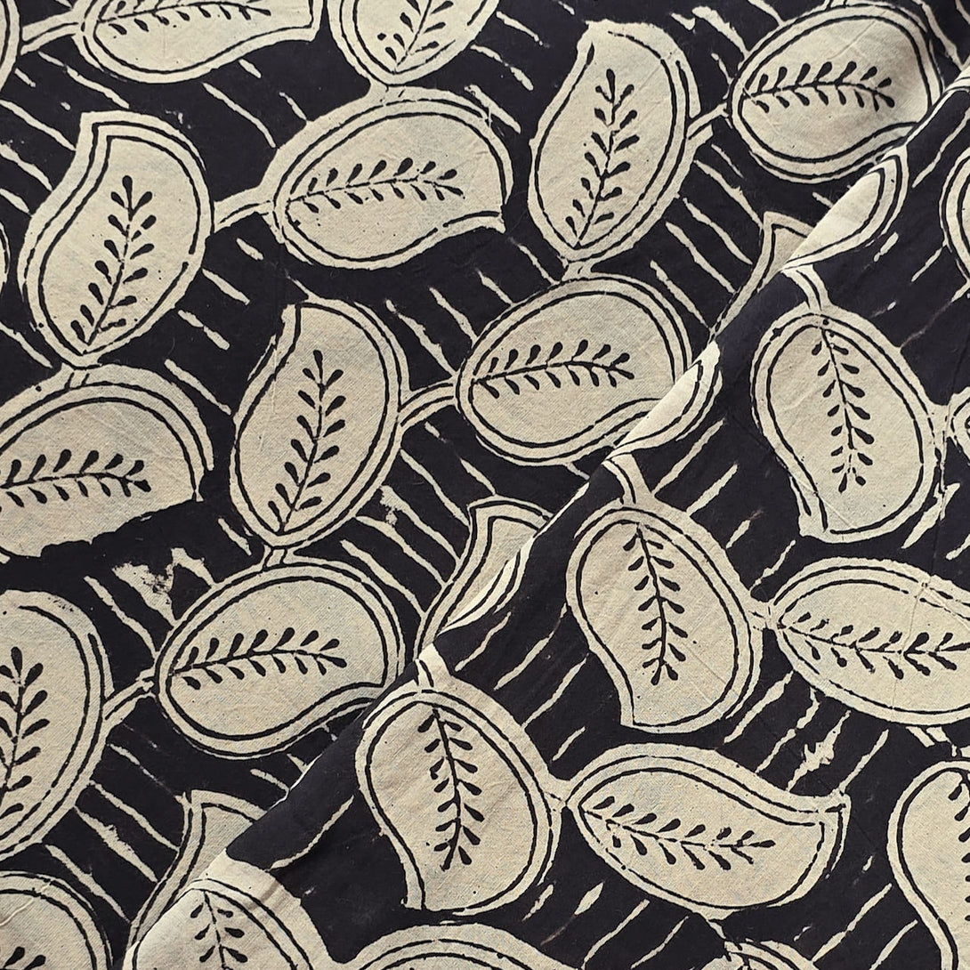 Pure Cotton Bagru Black With Cream Leaves Jaal Hand Block Print Fabric