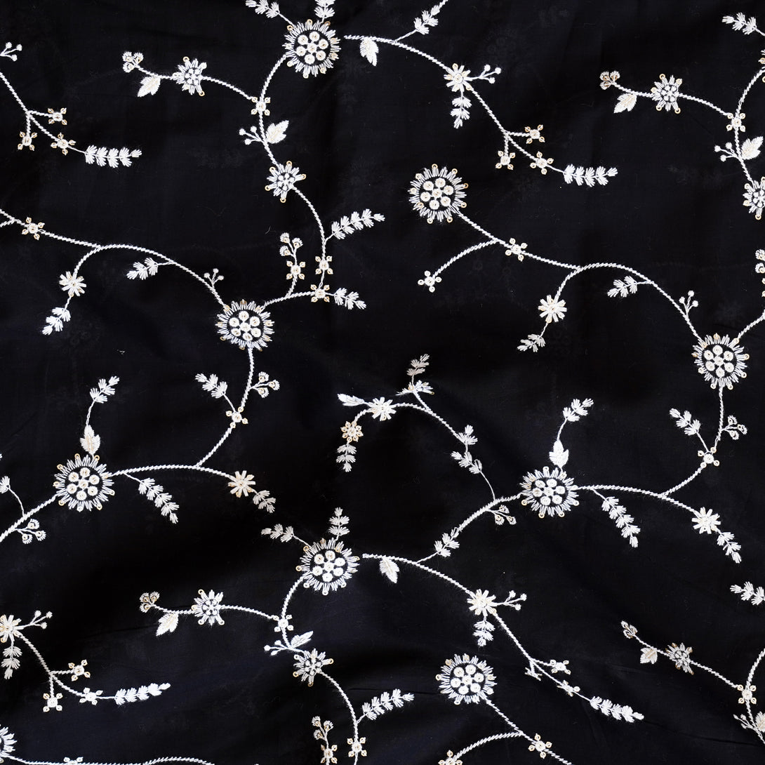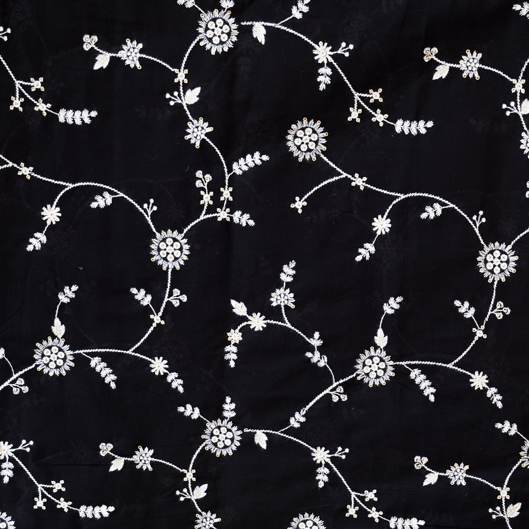 Pure Cotton Black And White Flower Jaal With Gold Sequence Embroidery Fabric