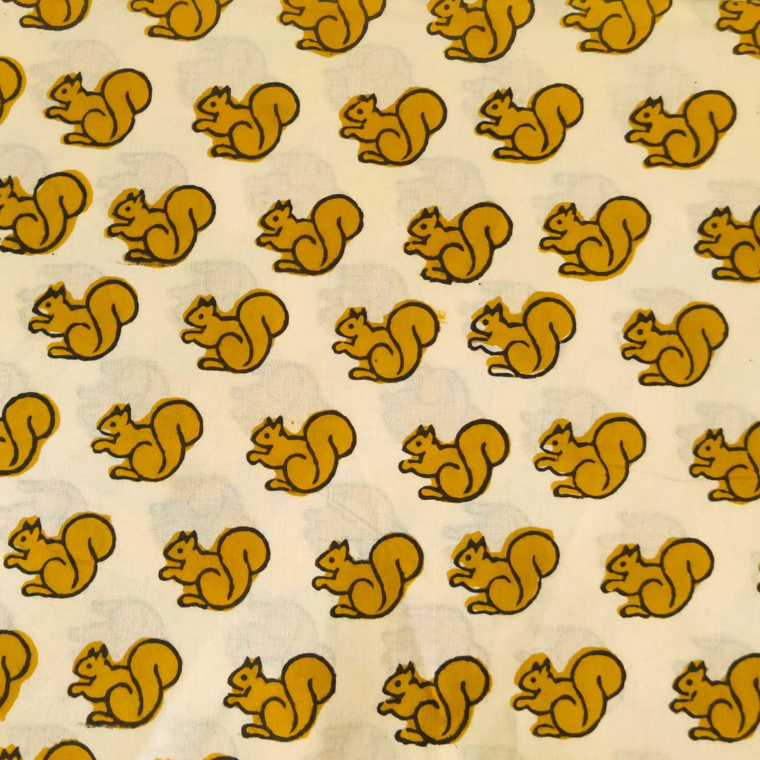 Pure Cotton Dabu Cream With Mustard Squirrel Hand Block Print blouse piece Fabric ( 0.80 meters)