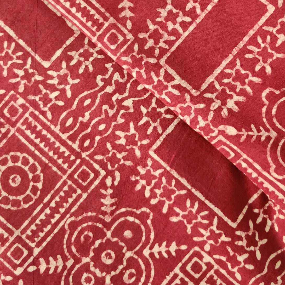Pure Cotton Dabu Mauve With Vedic Design Hand Block Print Fabric